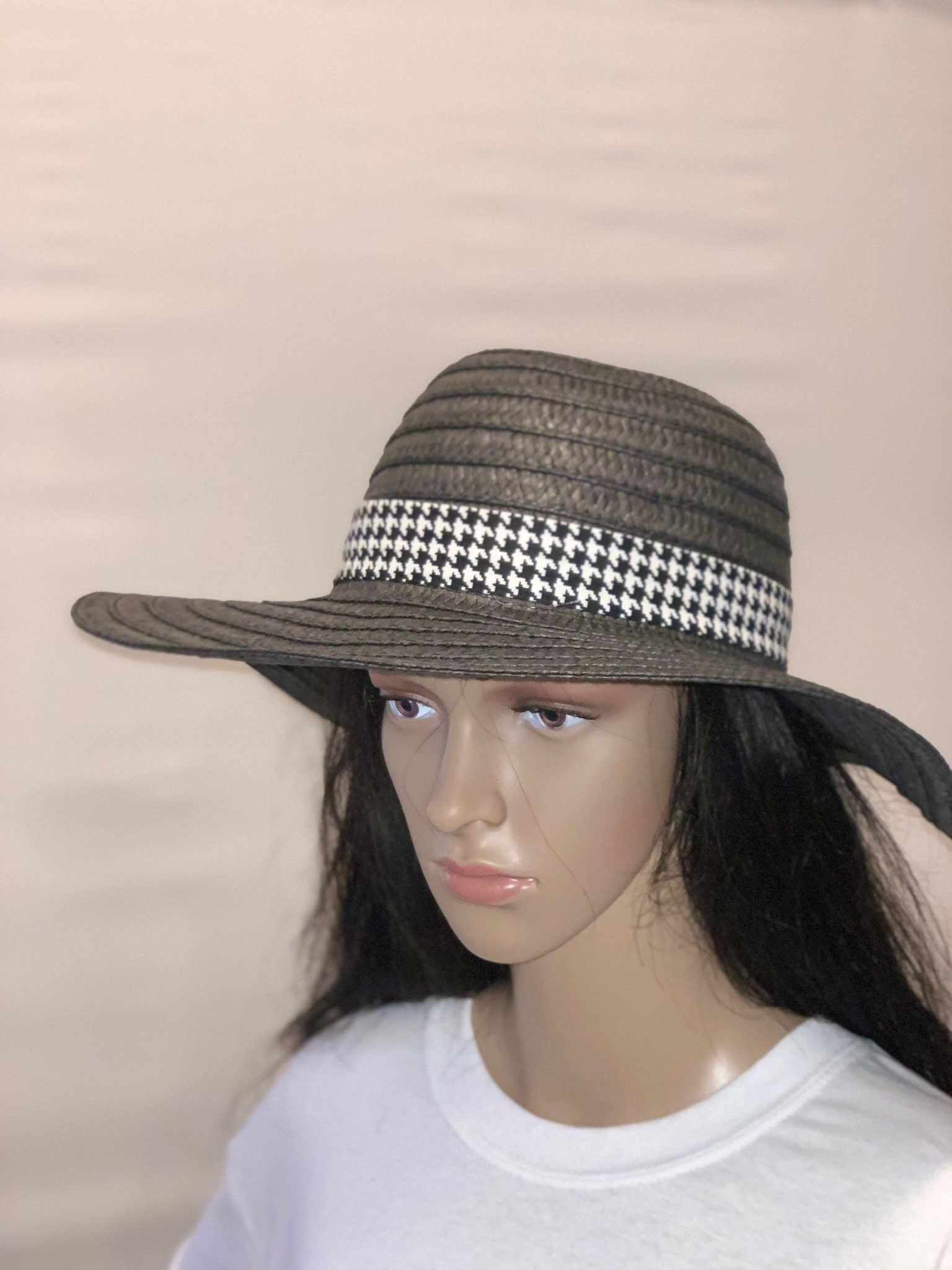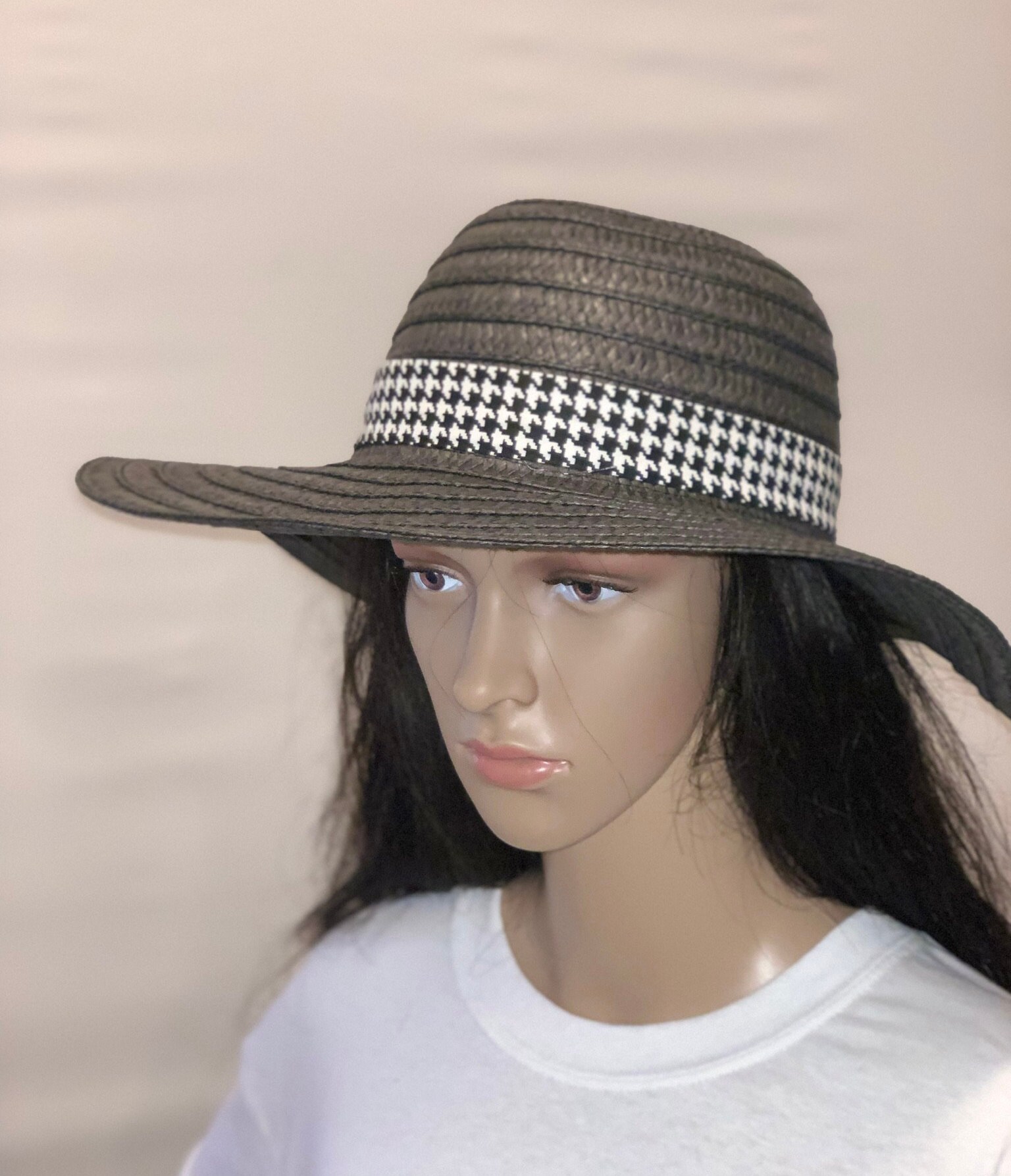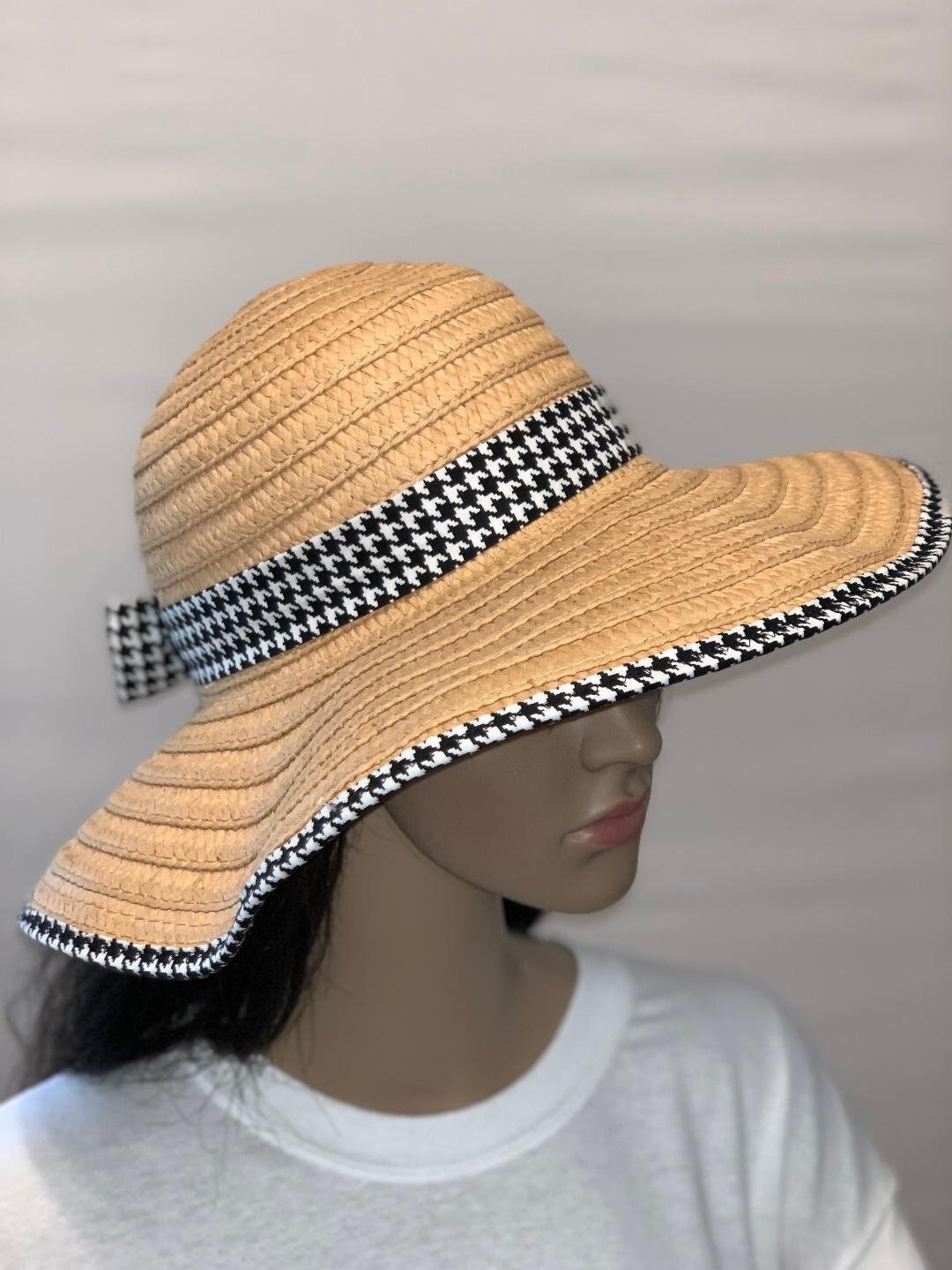 This Floppy Beach Sun Hat is trimmed in Houndstooth which is synonymous with the Legendary Coach Bear Bryant and the University of Alabama Crimson Tide! The Hat is made from Resilient Durable Paper Straw. The Band and Bow is made from Cotton material. Other Features include: *Internal Drawstring to adjust the fit and a Wide Brim that provides great coverage for the face, neck, and shoulders. This adorable hat is also very lighweight and can be folded for easy packing. Brim Spand: 4 inches.