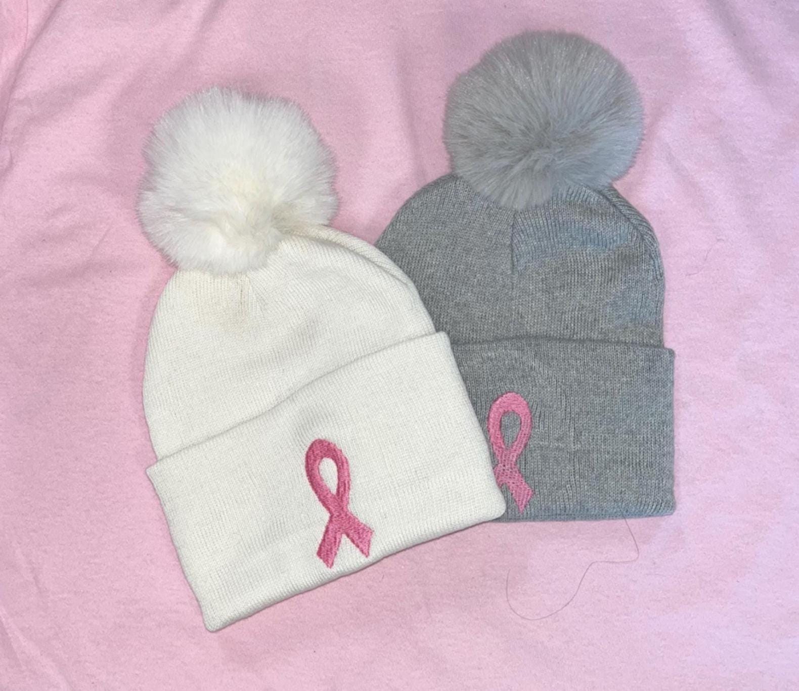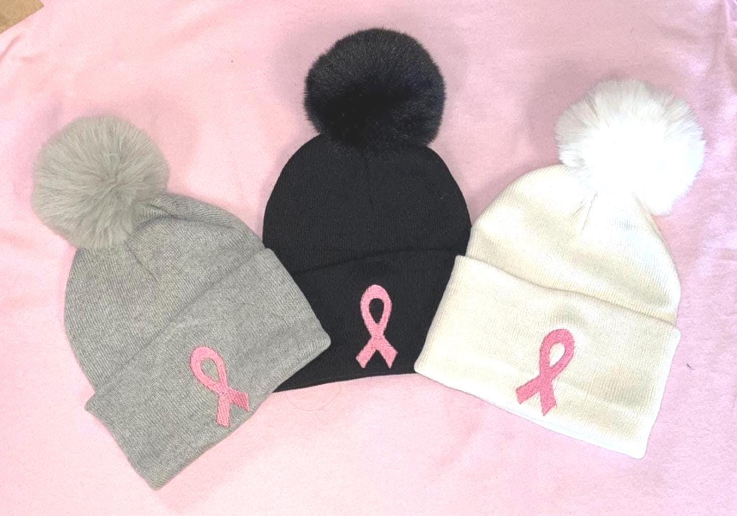 These unisex cancer awareness hats are great to wear in support of breast cancer awareness month and for warmth during the cold season. embroidered with pink colored ribbon. Will not peel or cracked . Made to last for years to come.