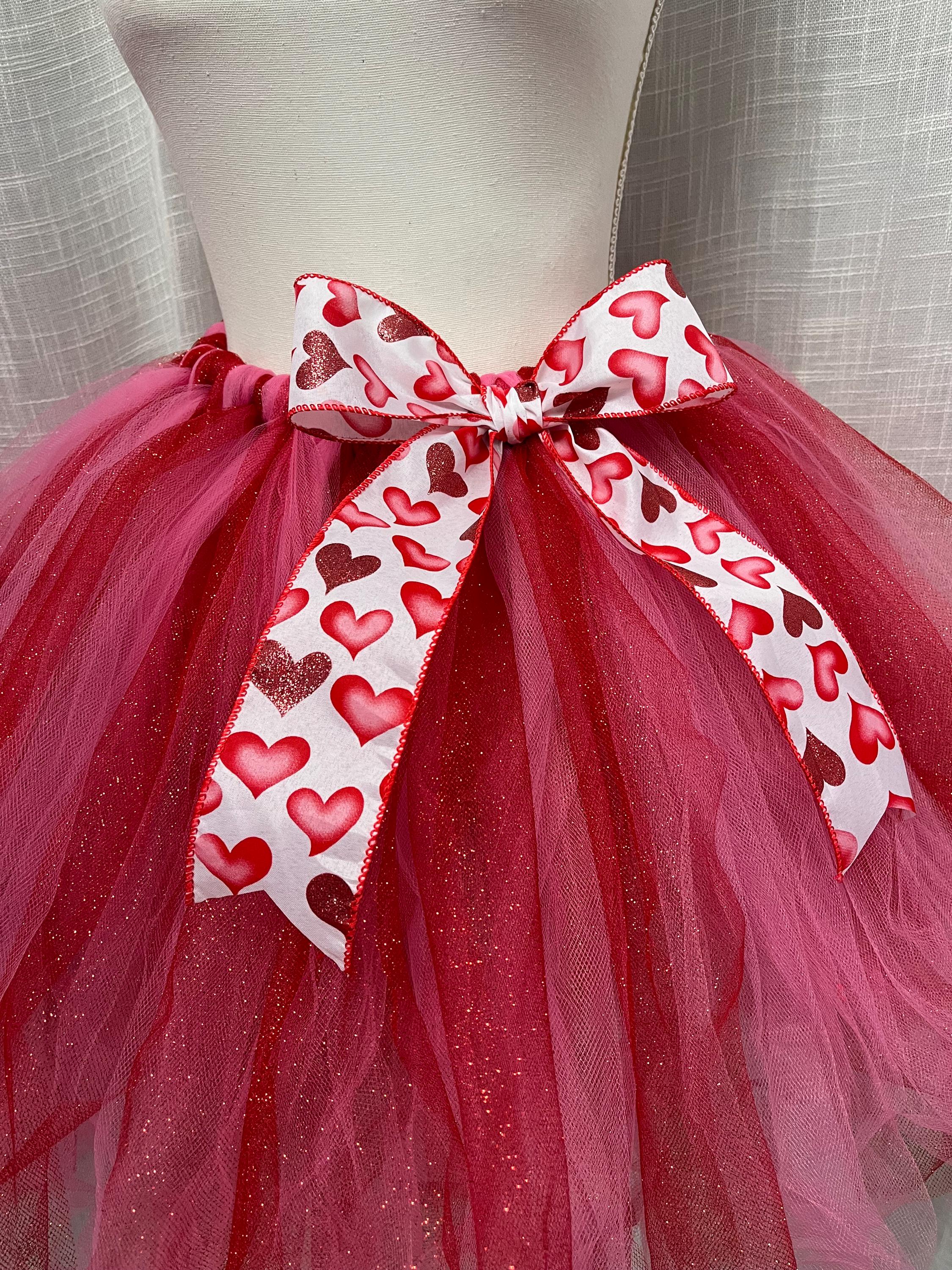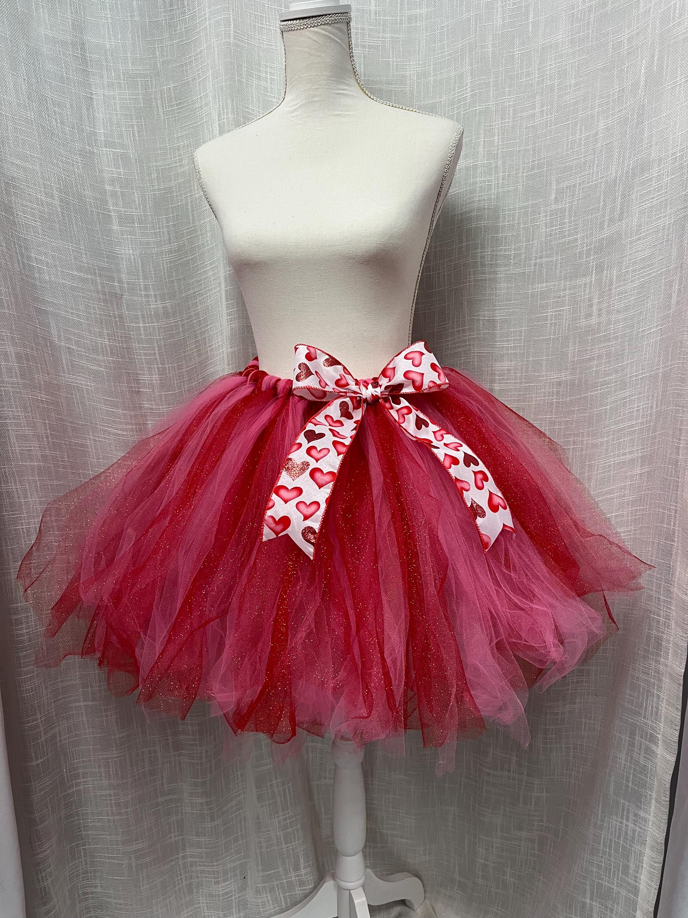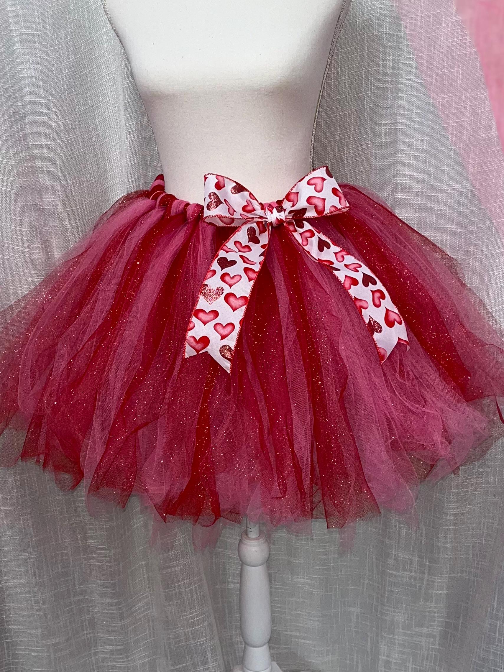 You are going to fall in love with this Beautiful shimmering red accent extra full and extra puffy Multi-Layered Knee length tutus, it is Handmade from 100% Polyester. Soft, Comfortable 1 inch satin covered Elastic Waistband. Comes with a beautiful Matching red and pink heart design bow. Lightweight and fun to wear. Paired with your favorite blouse for the perfect party outfit. Please reach out if you have questions or concerns. Thanks
