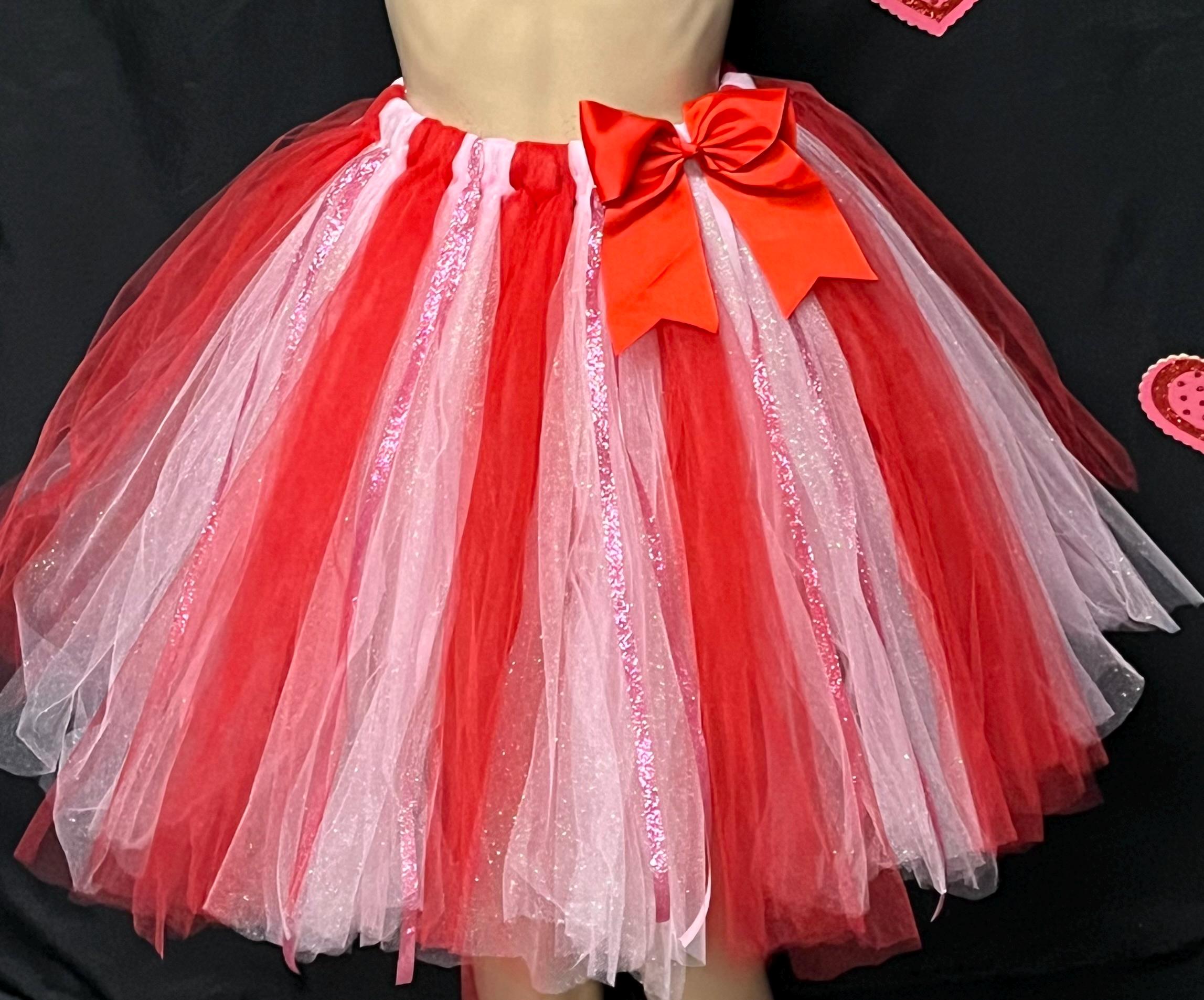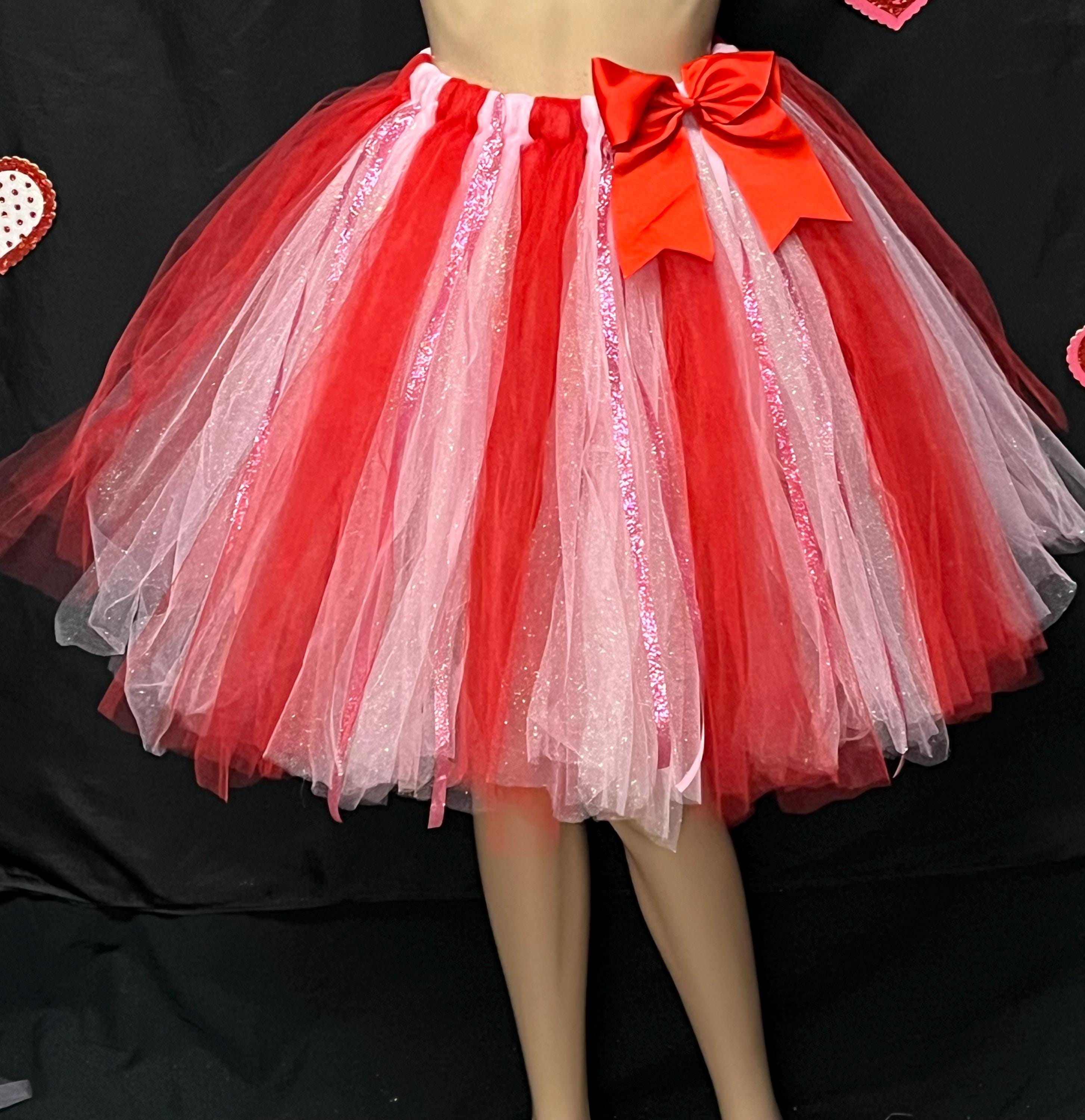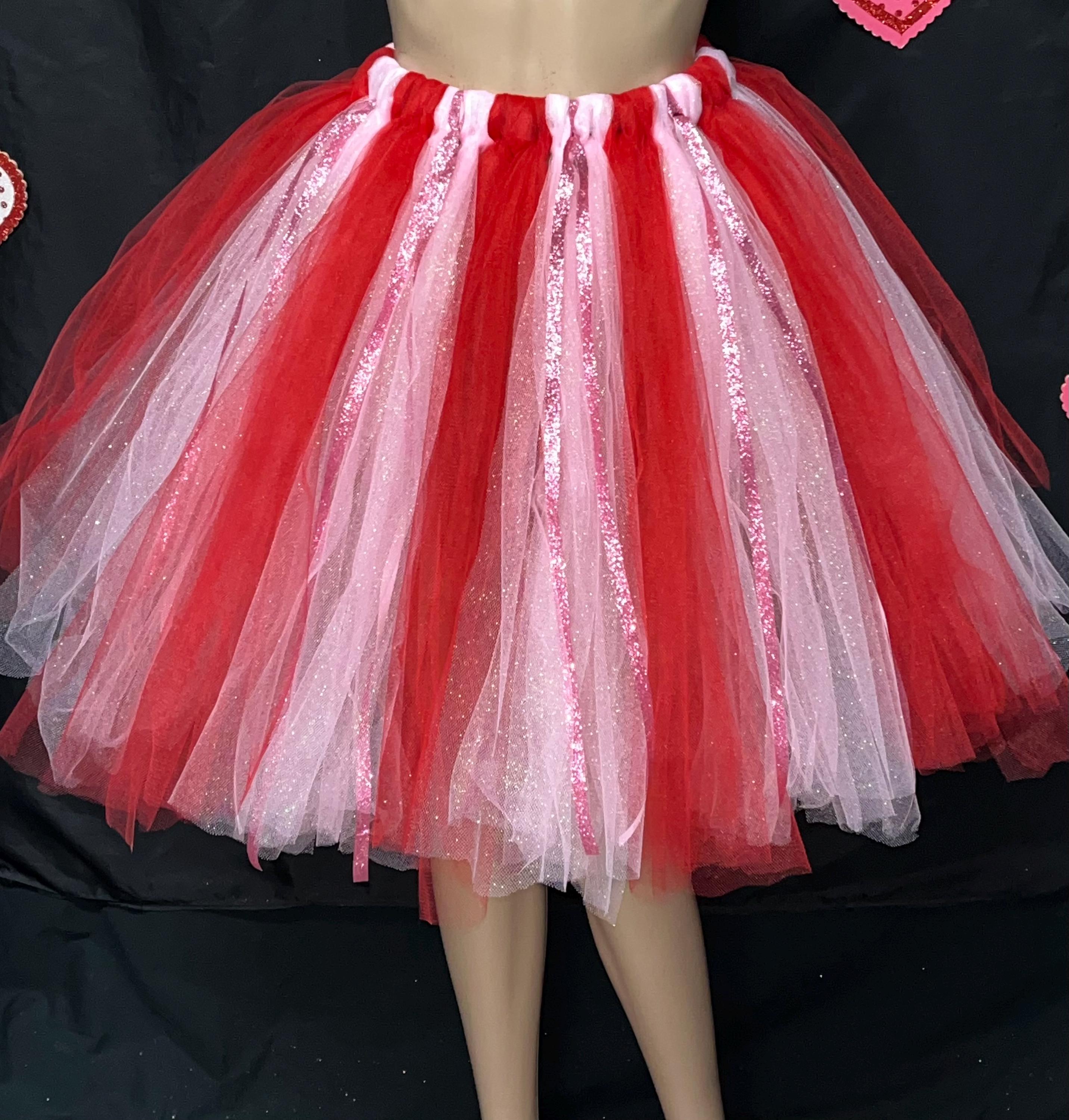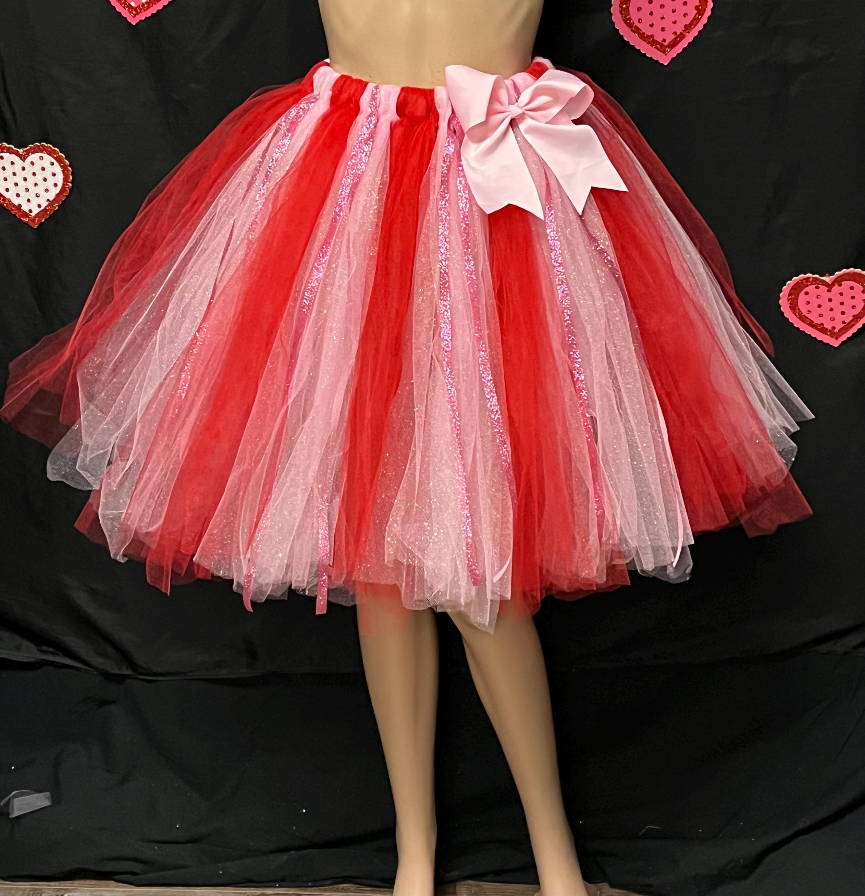 Red and pink colored adult tutu embellished sparkling pink ribbons enhances it’s beauty