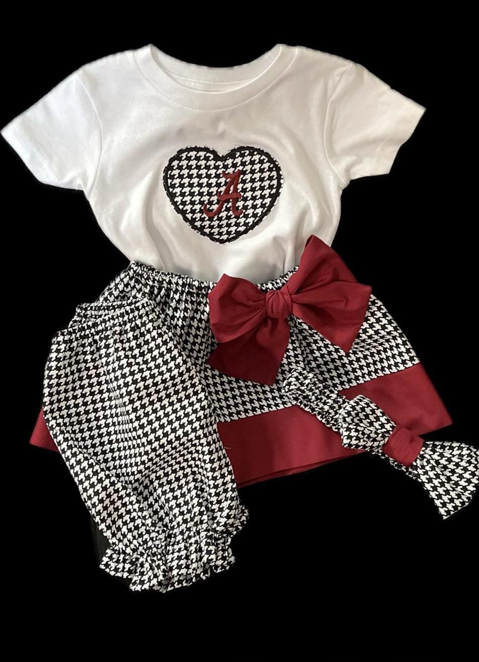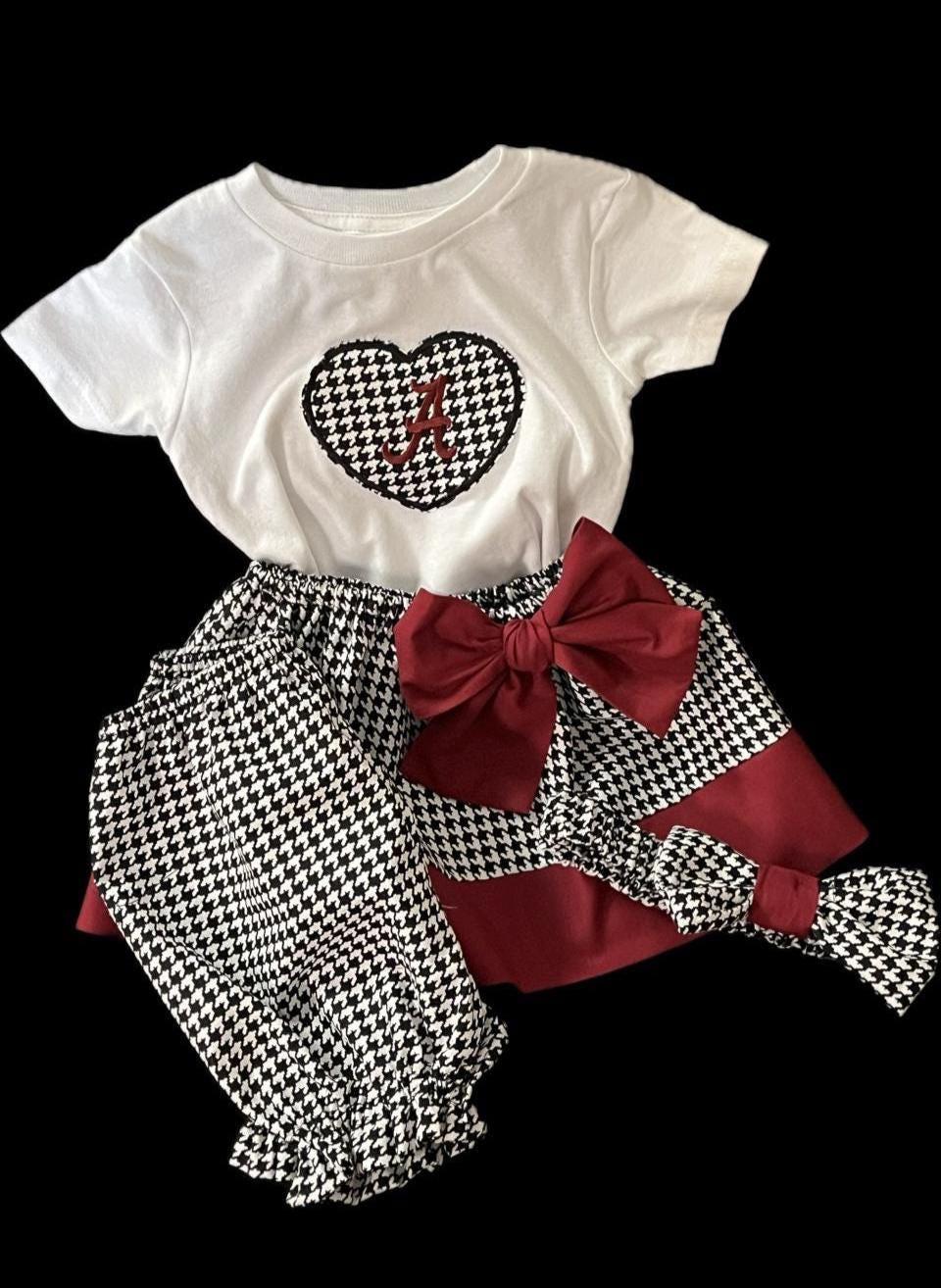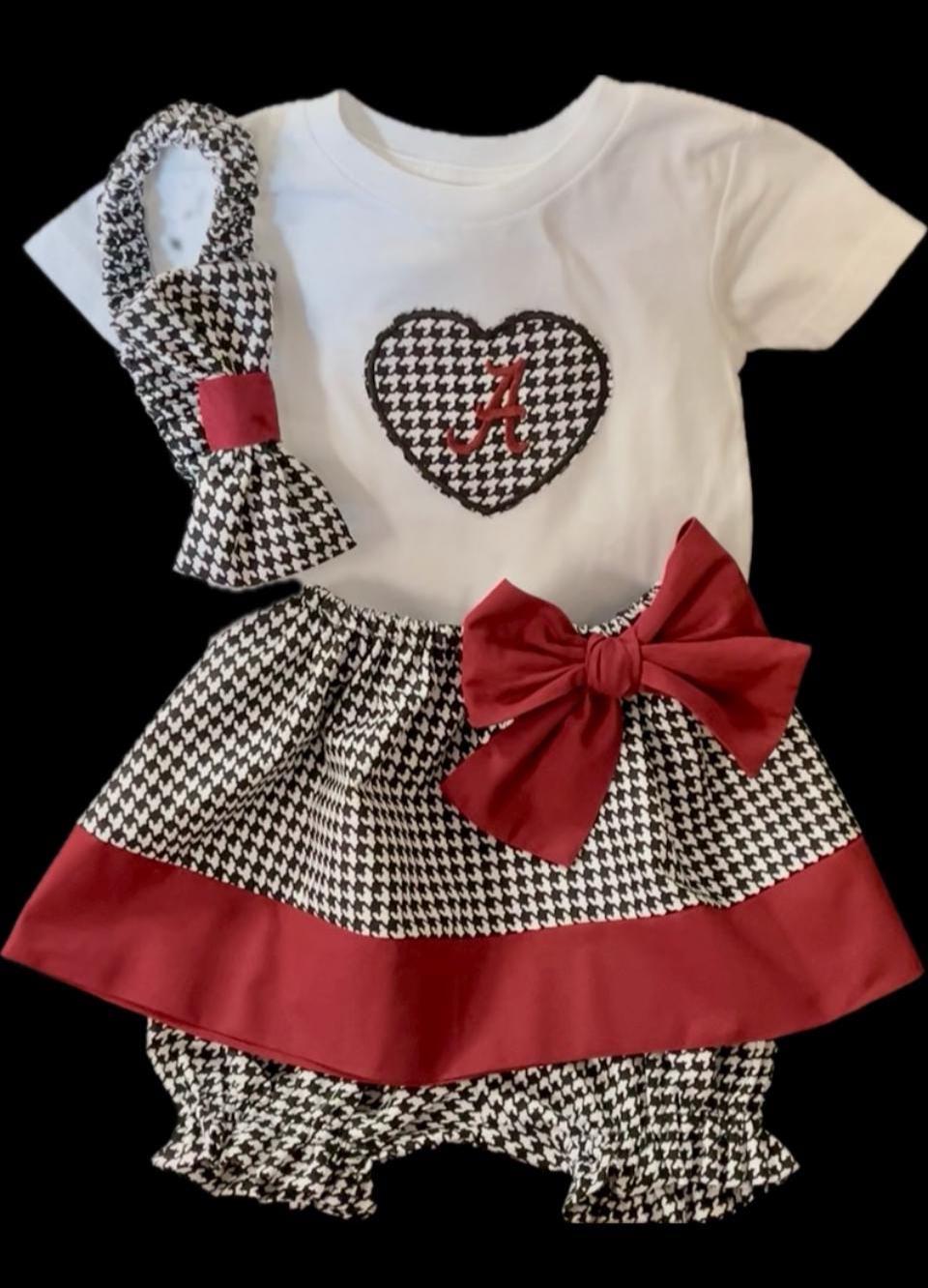 Houndstooth and Crimson red newborn/ toddler/ babies children outfit with matching bloomers and headband