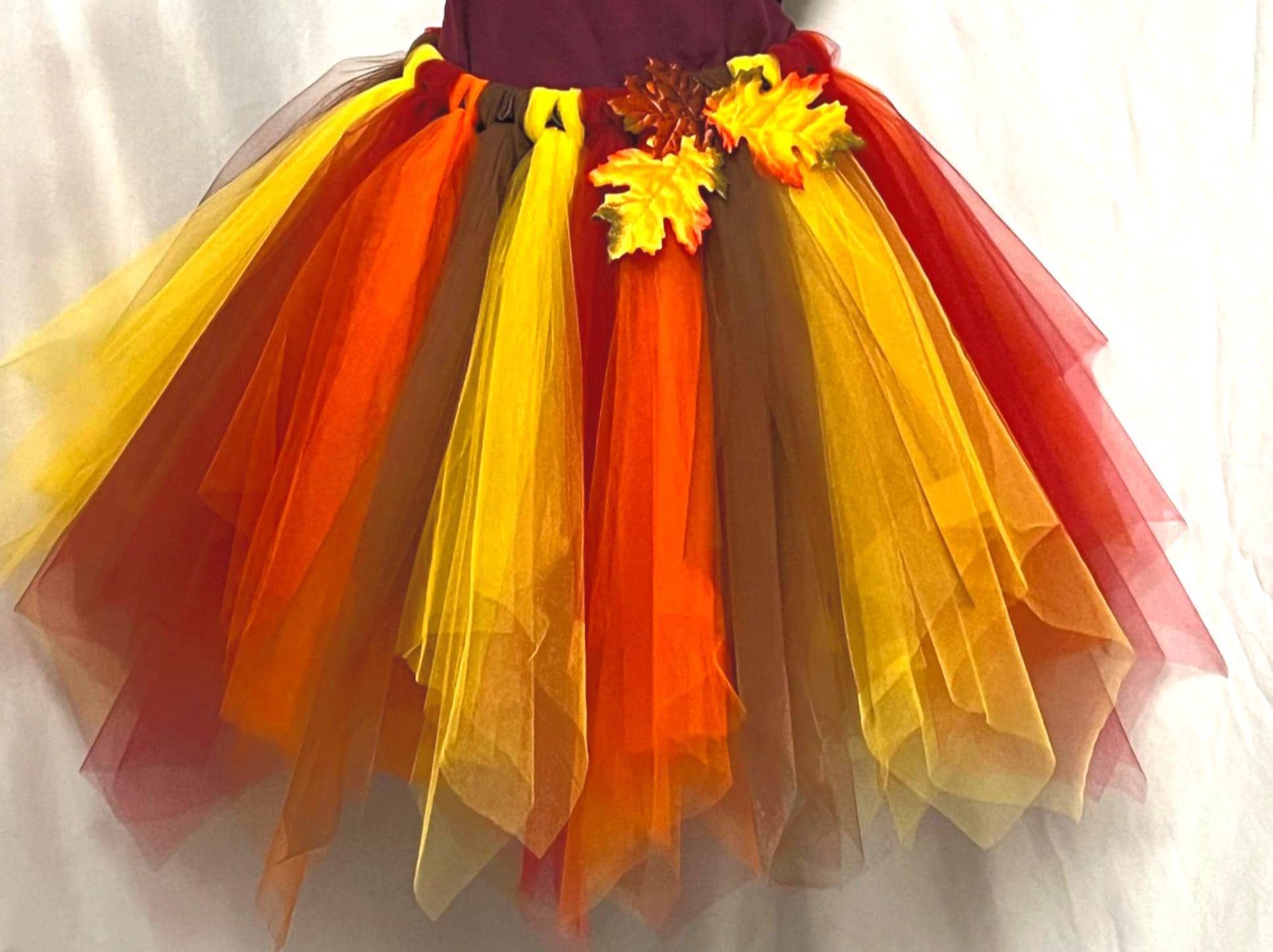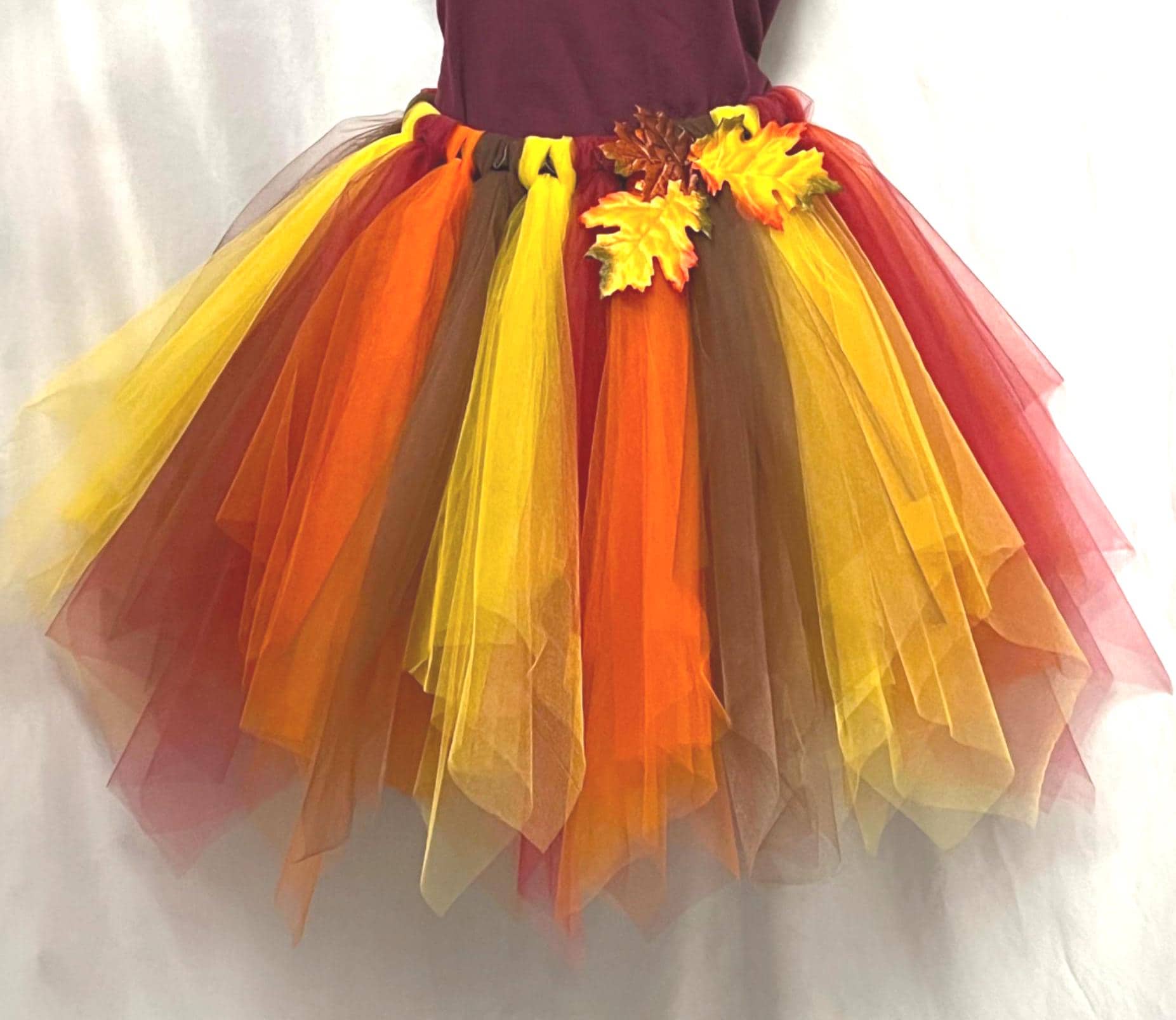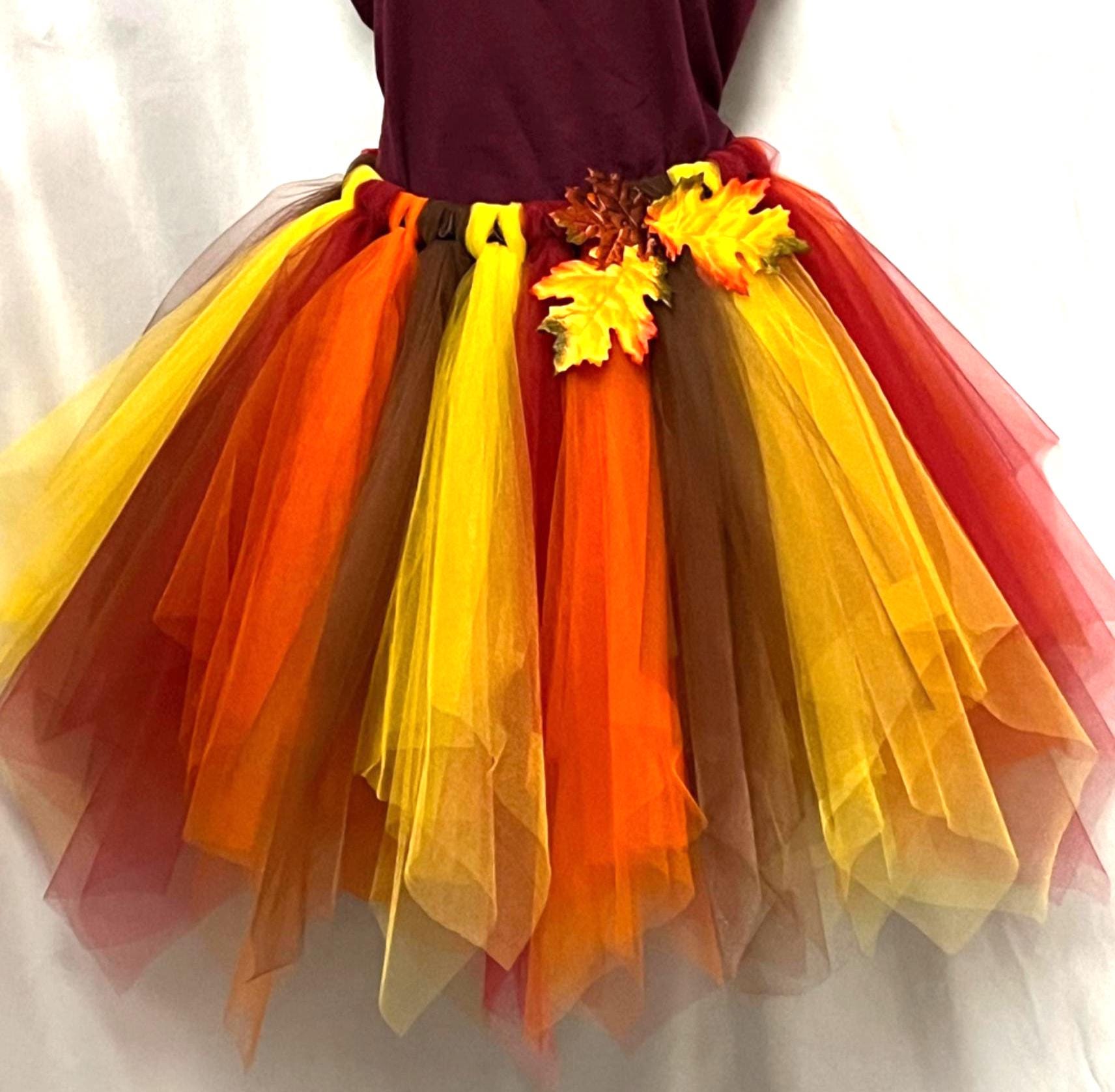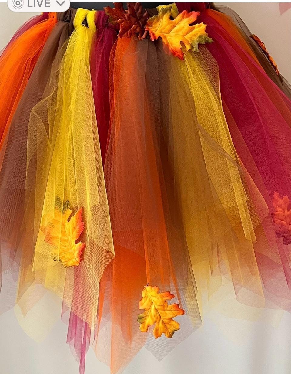 You are going to love this beautiful woodland fairy fall tutus . It is made of tulle fabric and polyester fabric fall leaves. These beautiful assorted color leaves are sewed on , will not fall off will last for years and years. The Rich Earth Tones / fall/ Autumn Tutu was inspired by the fall season. Beautiful Burnt Oranges, Dark Browns, and Yellow are the splendid colors that make up this lovely Tutu...Handmade from 100% Polyester Tulle Fabric. Comes with 1 inch Elastic Waistband and a beautiful Chocolate Bow. Lightweight. Very well Crafted. Great for all your fall festivities. ,. These lengths are available in your preferred or your favorite colors as well at no additional cost to you . Please