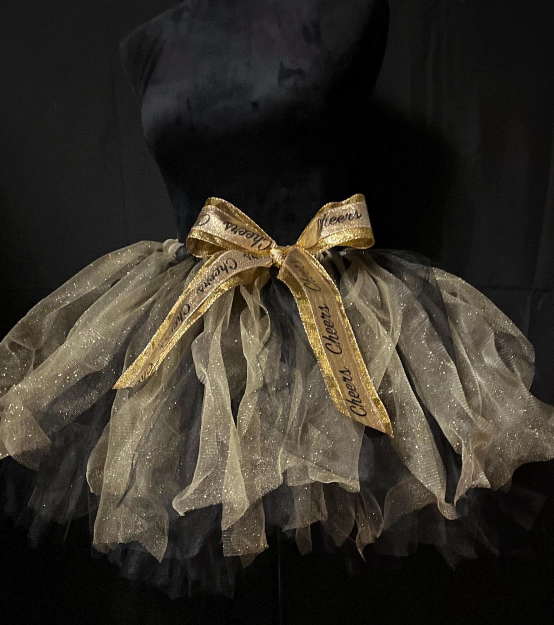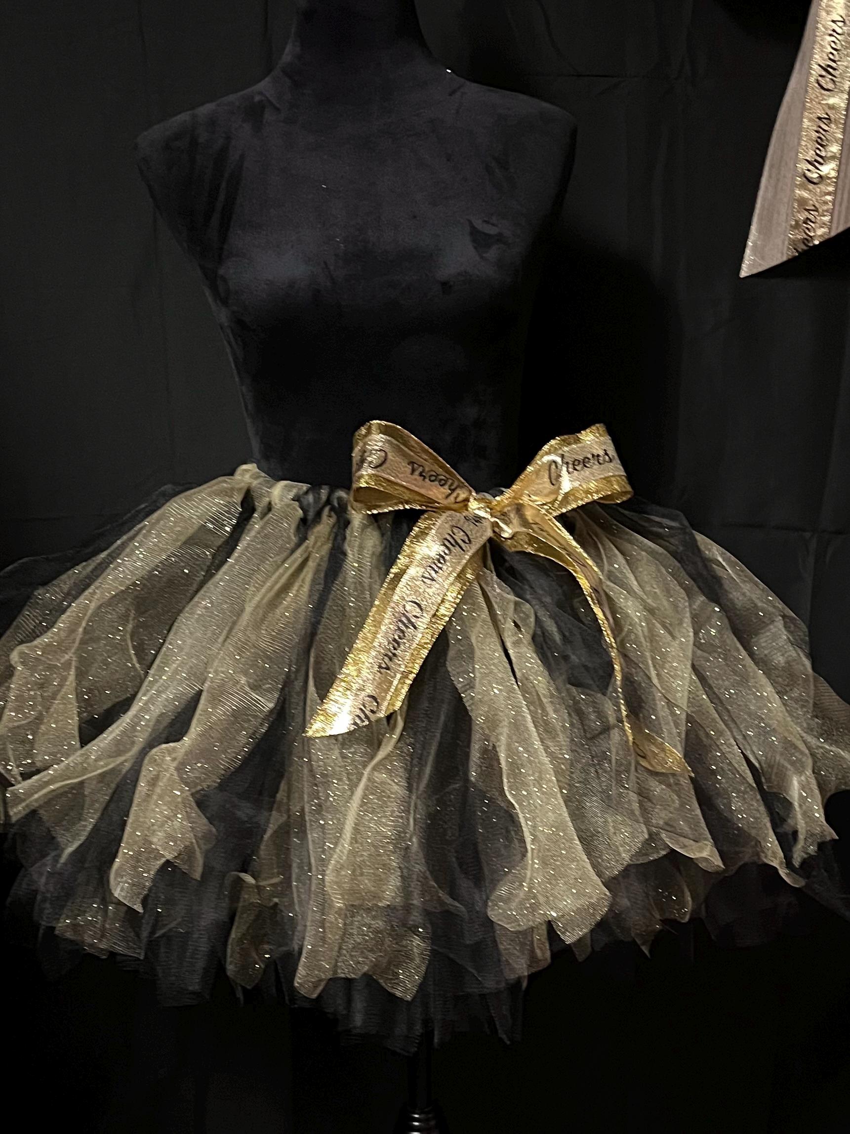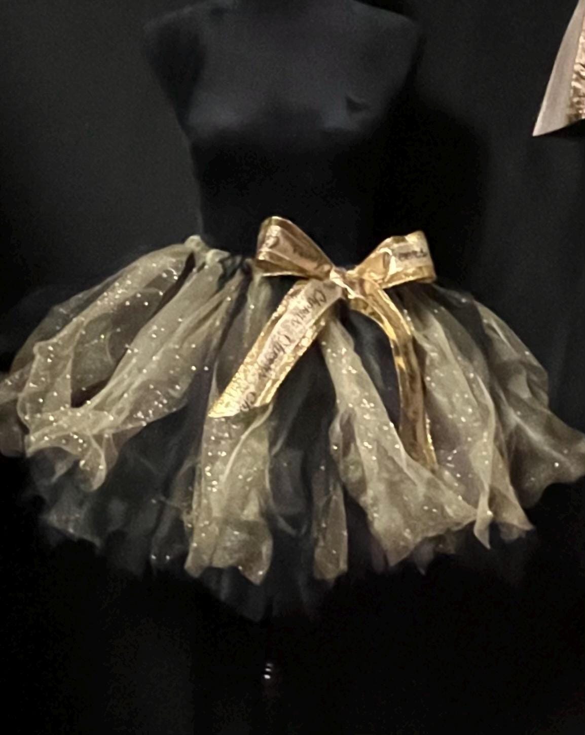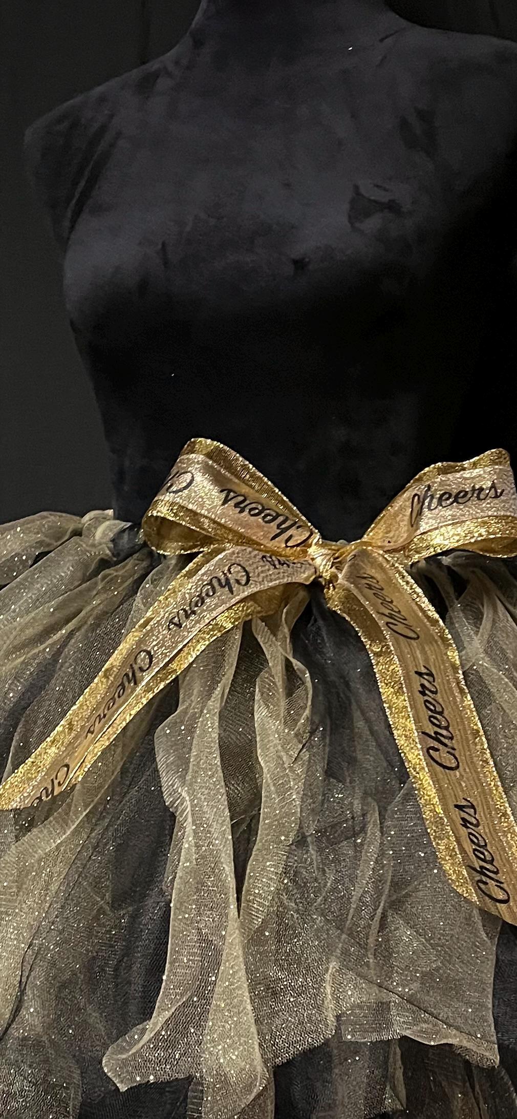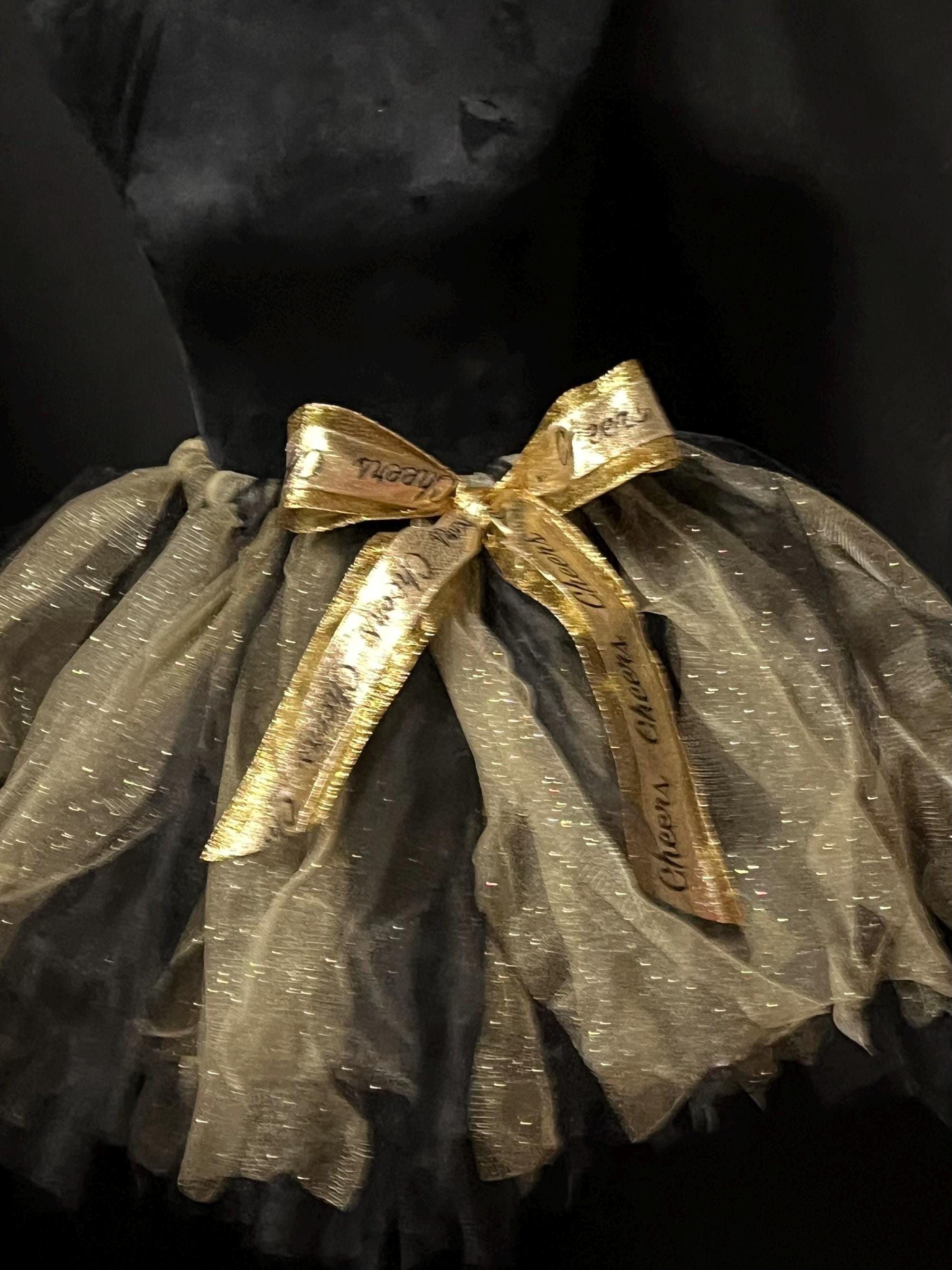 Sparkly gold and black Children's Tutu: Shimmering gold curly design shiny gold bow