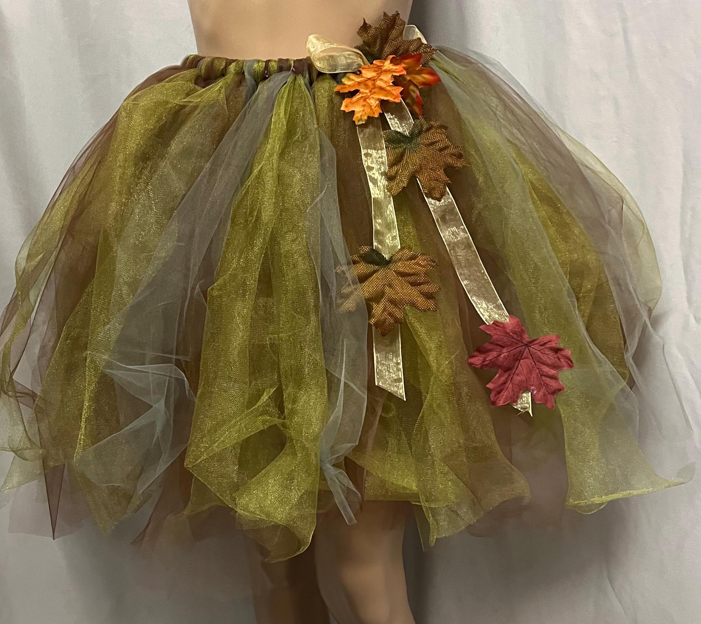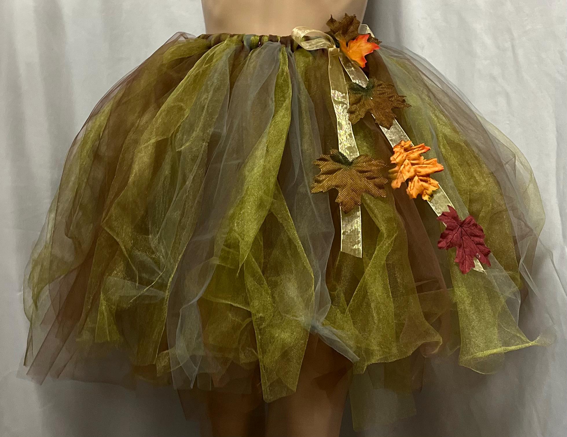 You are going to have fun prancing in this adorable earth tone with shiny ribbon and fall leaves accented tutus.. made from %100 tulle material.. different lengths to choose from .. desired a different color..,no problem! Simple leave a note for seller in the message box provided after your purchase. Thanks