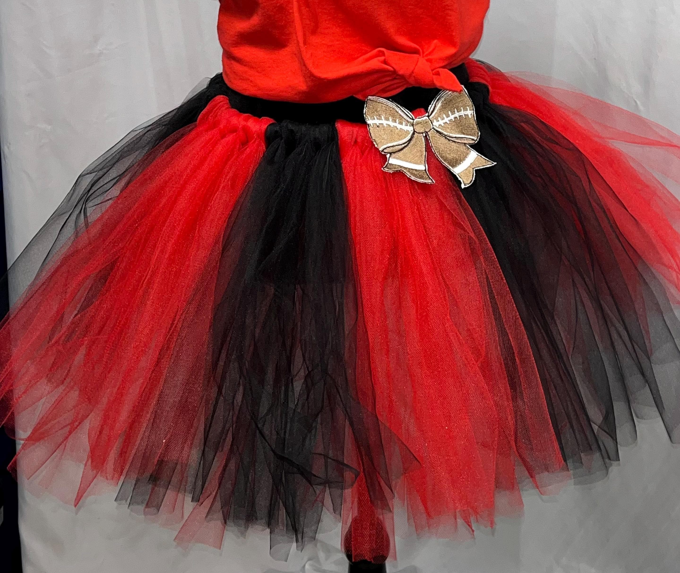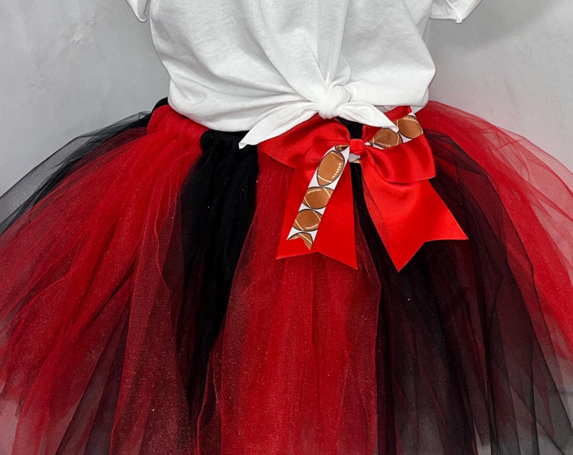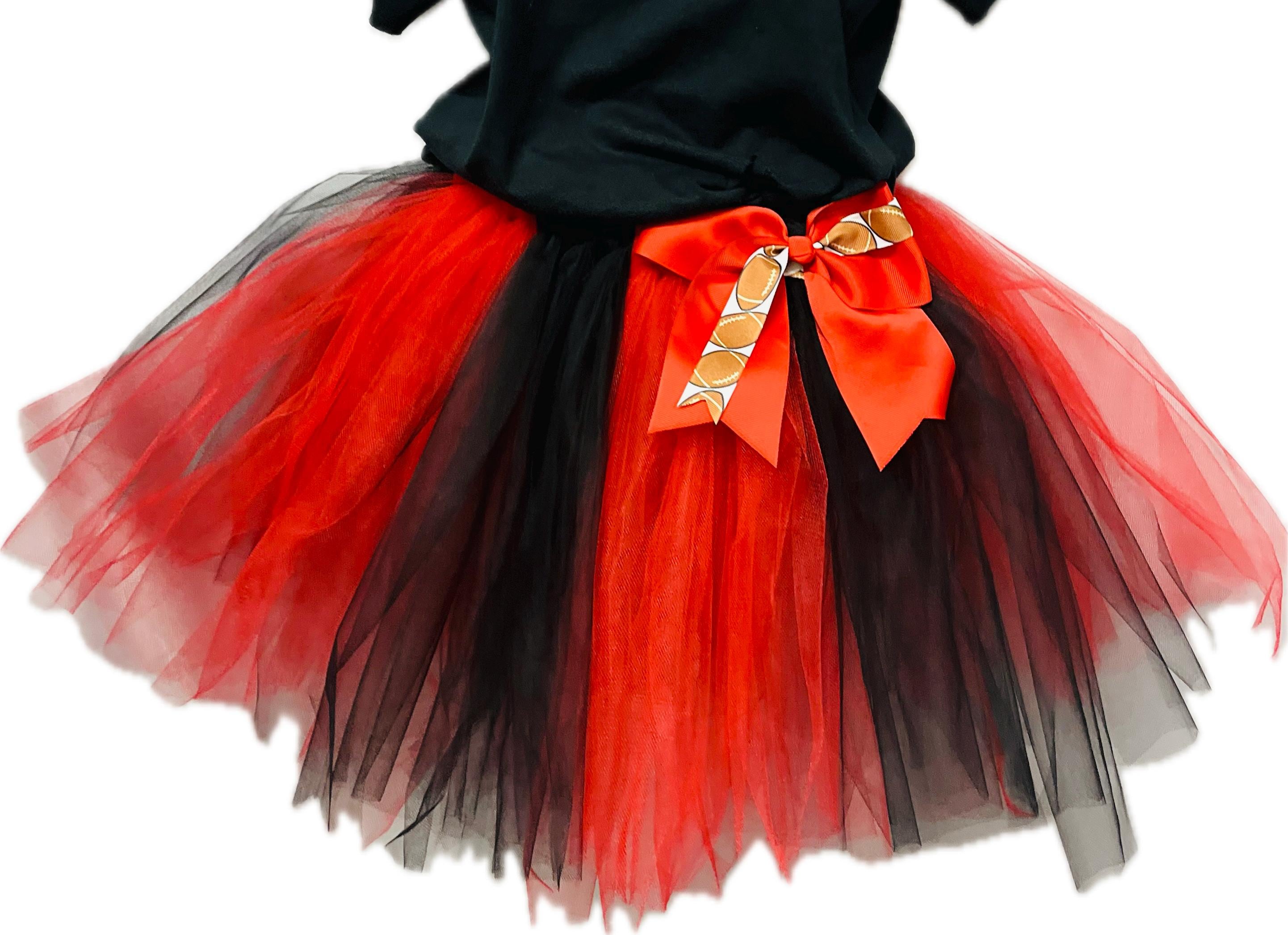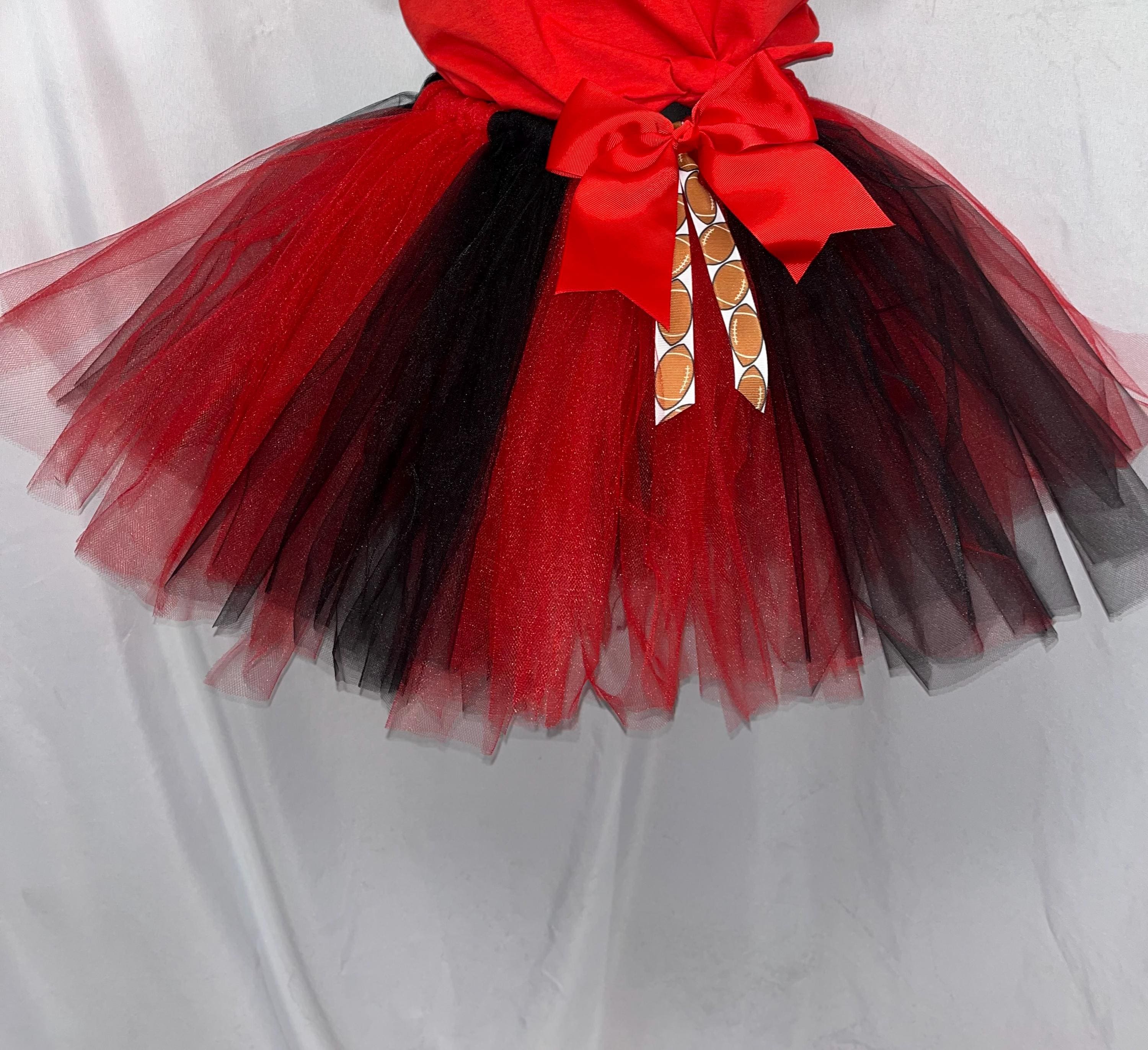 You are going to fall in love with this Beautiful red and black football theme tutu, Handmade from 100% Polyester materials with a soft and comfortable 1 inch satin covered Elastic Waistband. Several designs to choose from.. Fun to wear on game days or at anytime to show your favorite team spirit . 16 inches long , can be lengthened up to an additional 3 inches. same length is available in other colors as well upon request Thanks