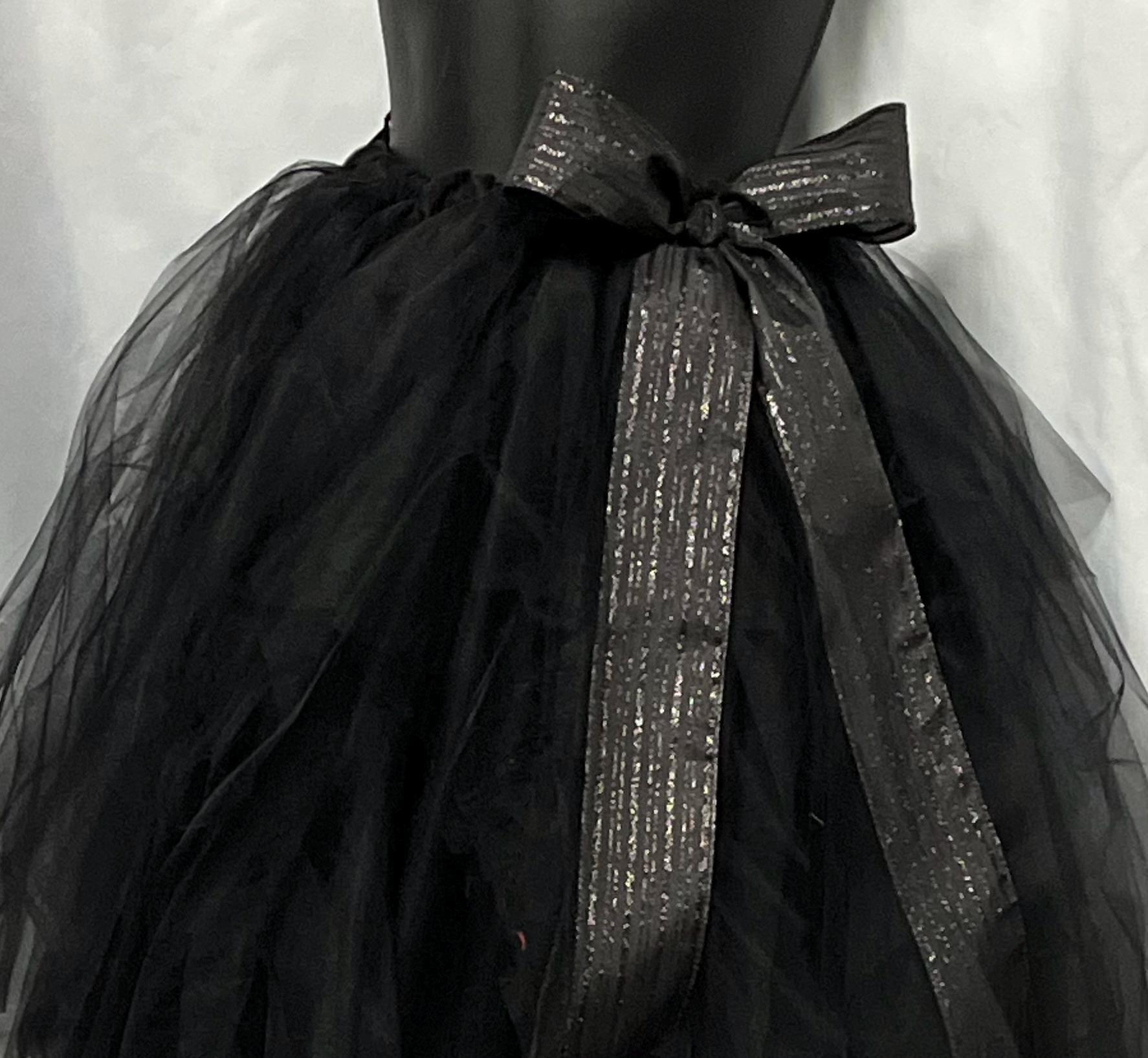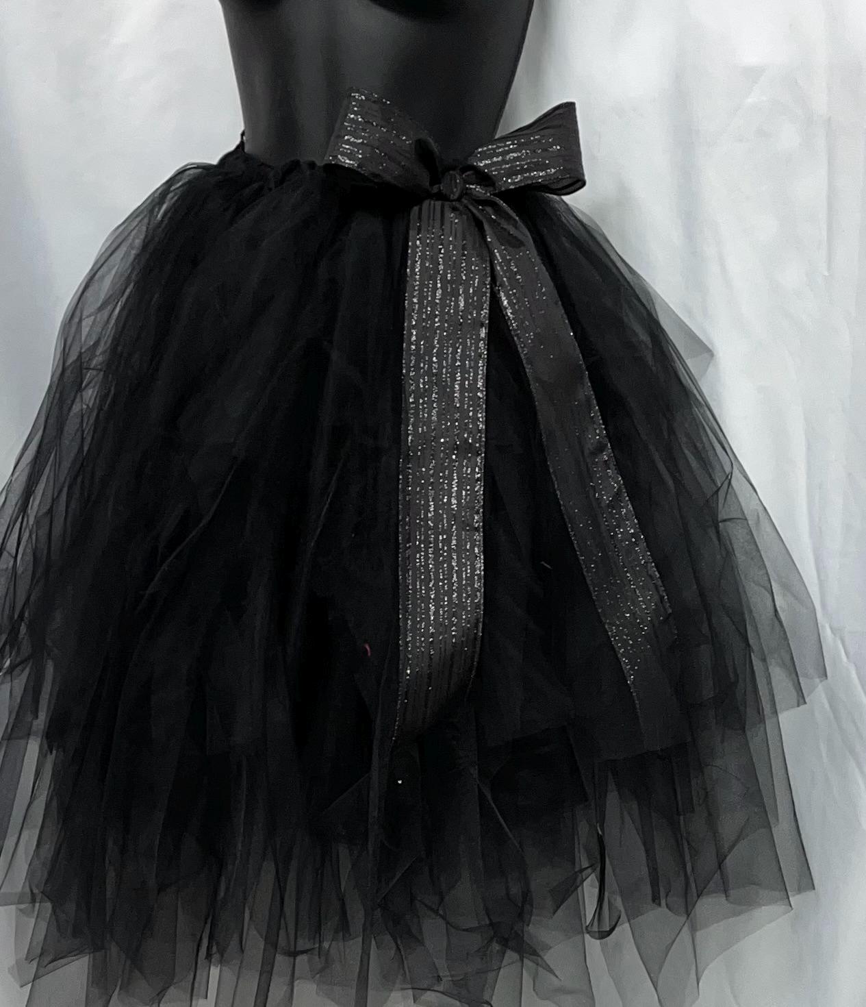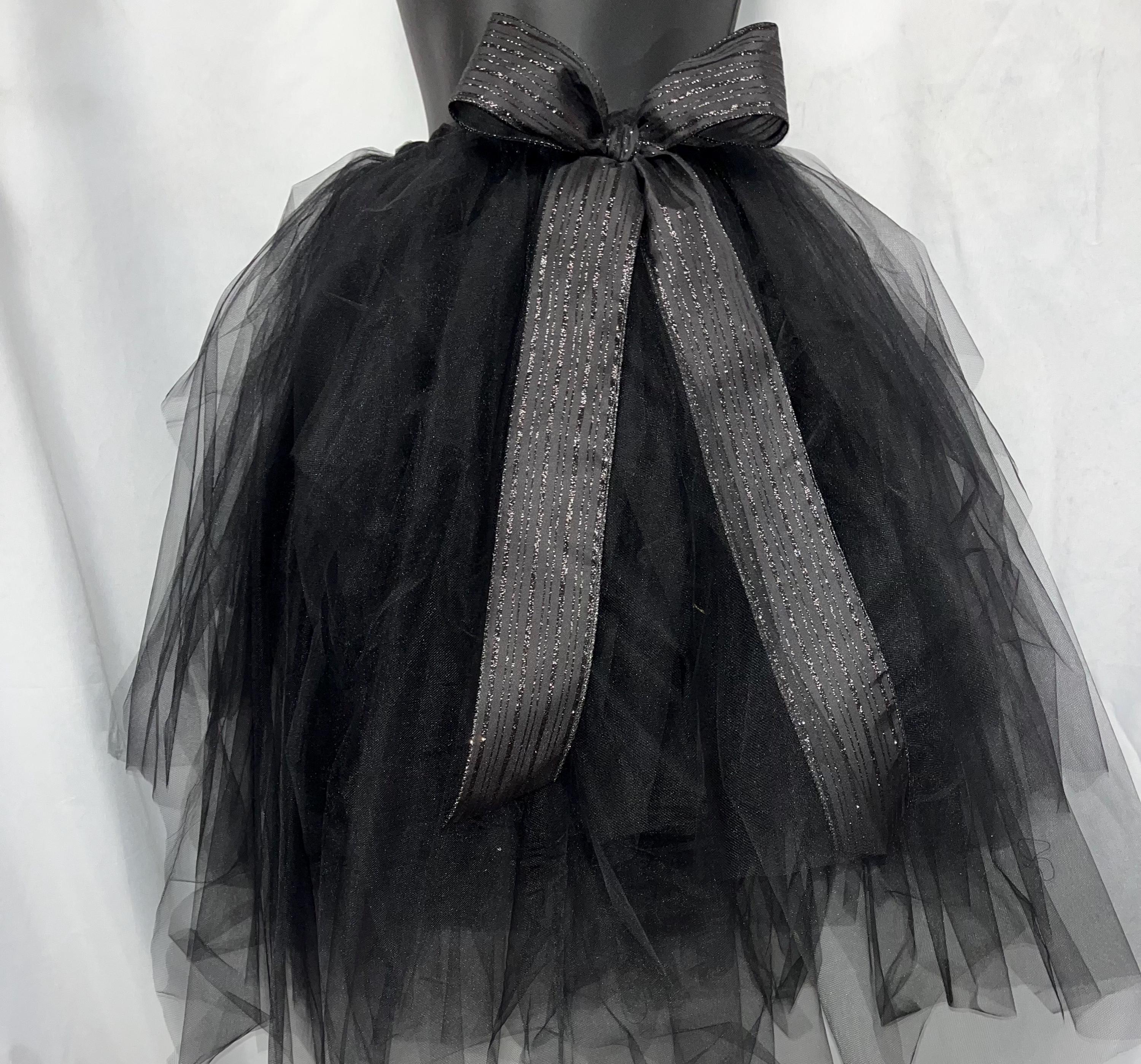 Adults and teens long Black and adorable tutu embellished with extra large velvet bow