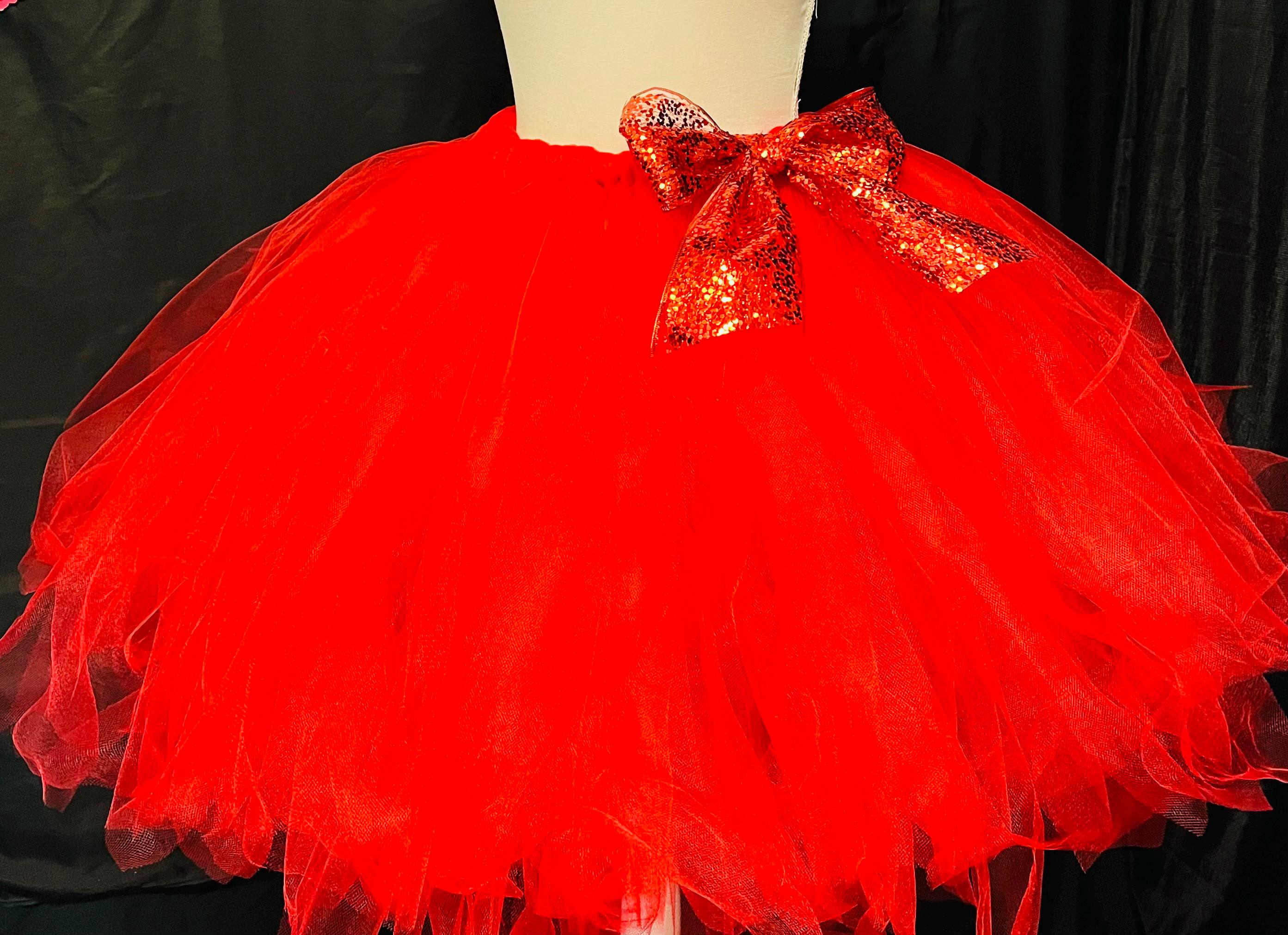 Children red color tutu for this Christmas . Made with the holiday season in mind. This beautiful well crafted red color tutu is embellished with a large sparkling red bow Great for all your Christmas festivities. Can be worn as Casual, Formal or semi- formal .. Thanks