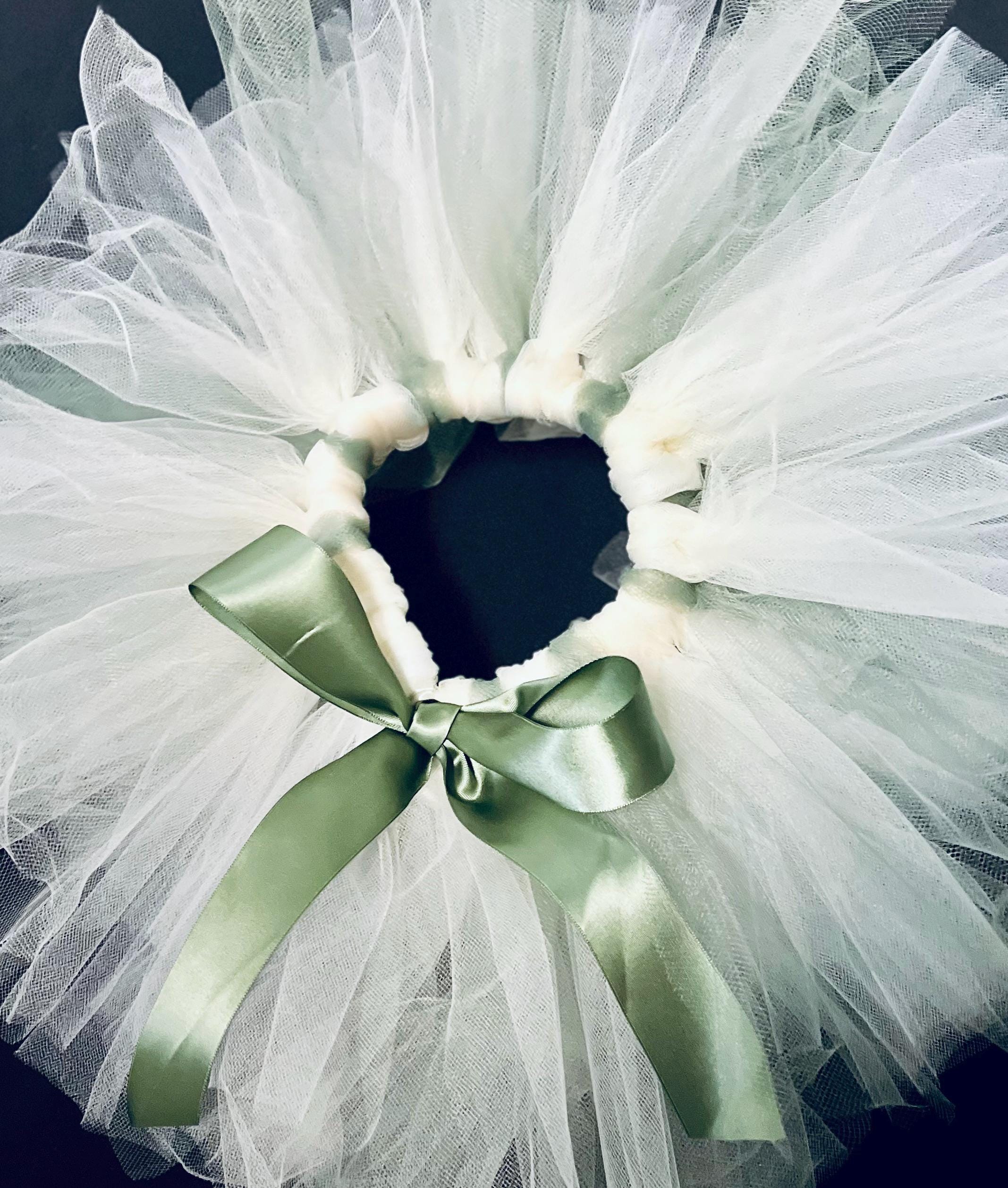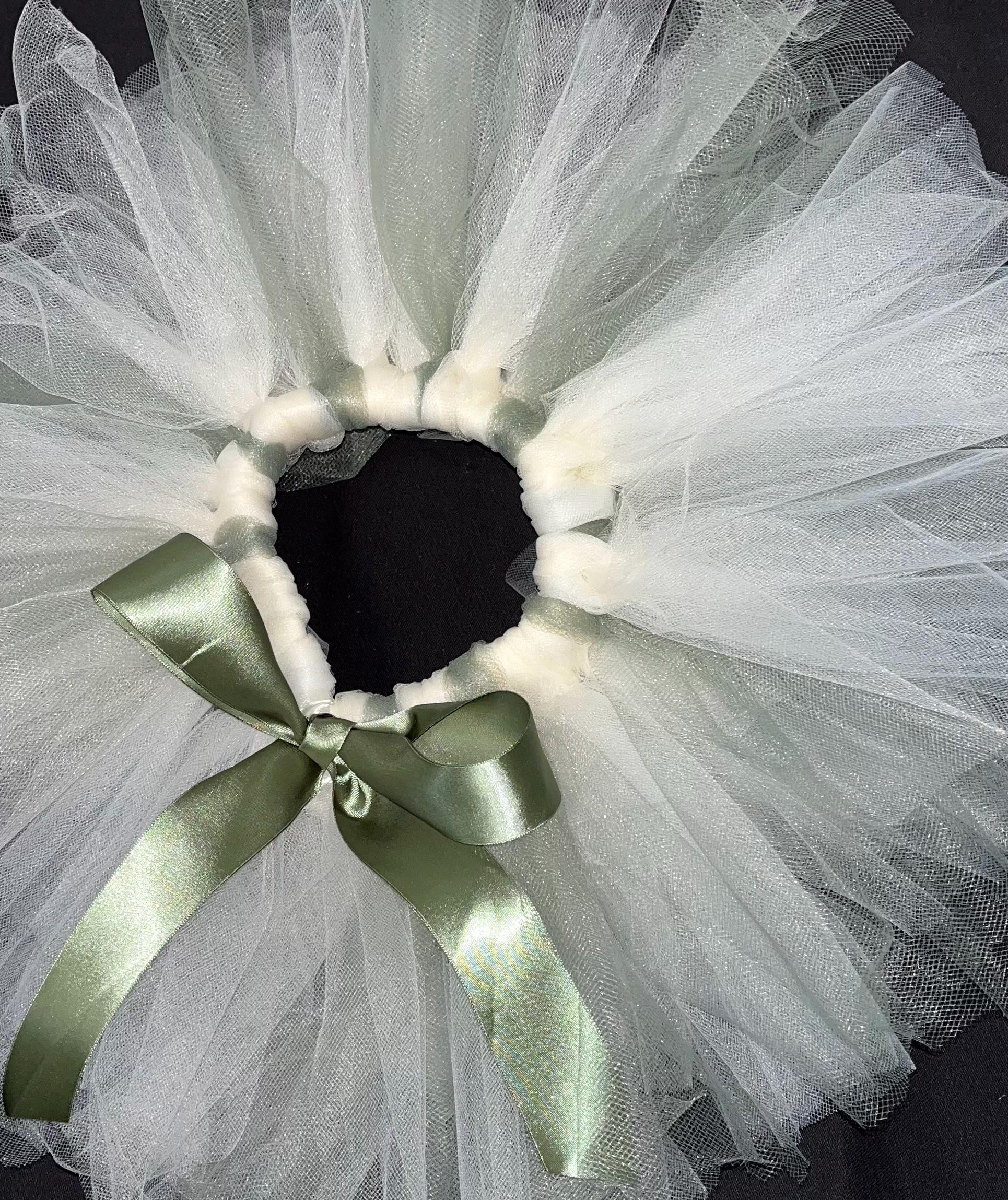 These bright cream color tutus with mossy green color bow is just in time for Easter. Handmade from %100 polyester tulle material.. … great for many different. occasions.. desire a different color? No problem . After you have completed your purchase simply include a note with your desired colors in the message box provided. Thanks