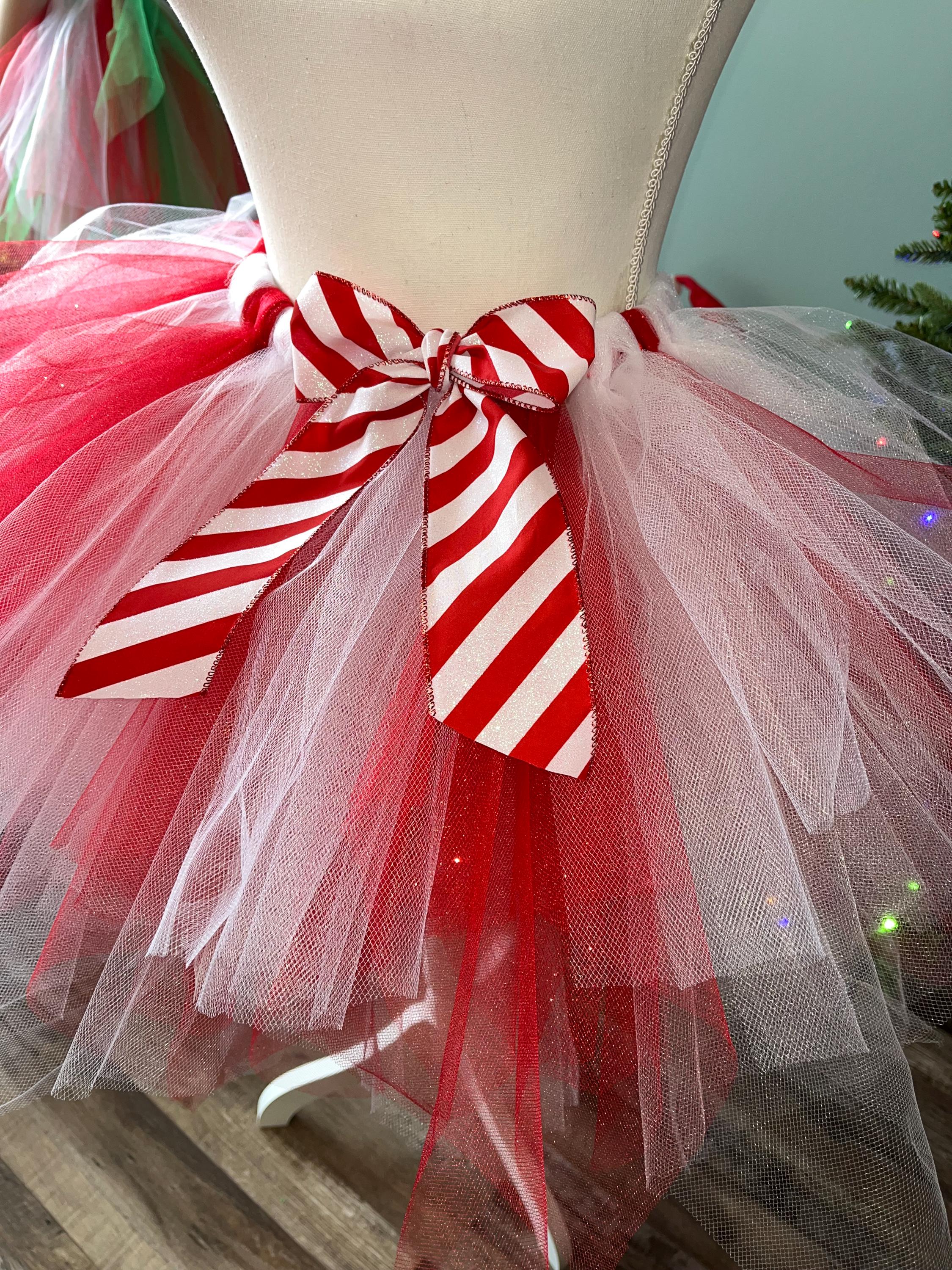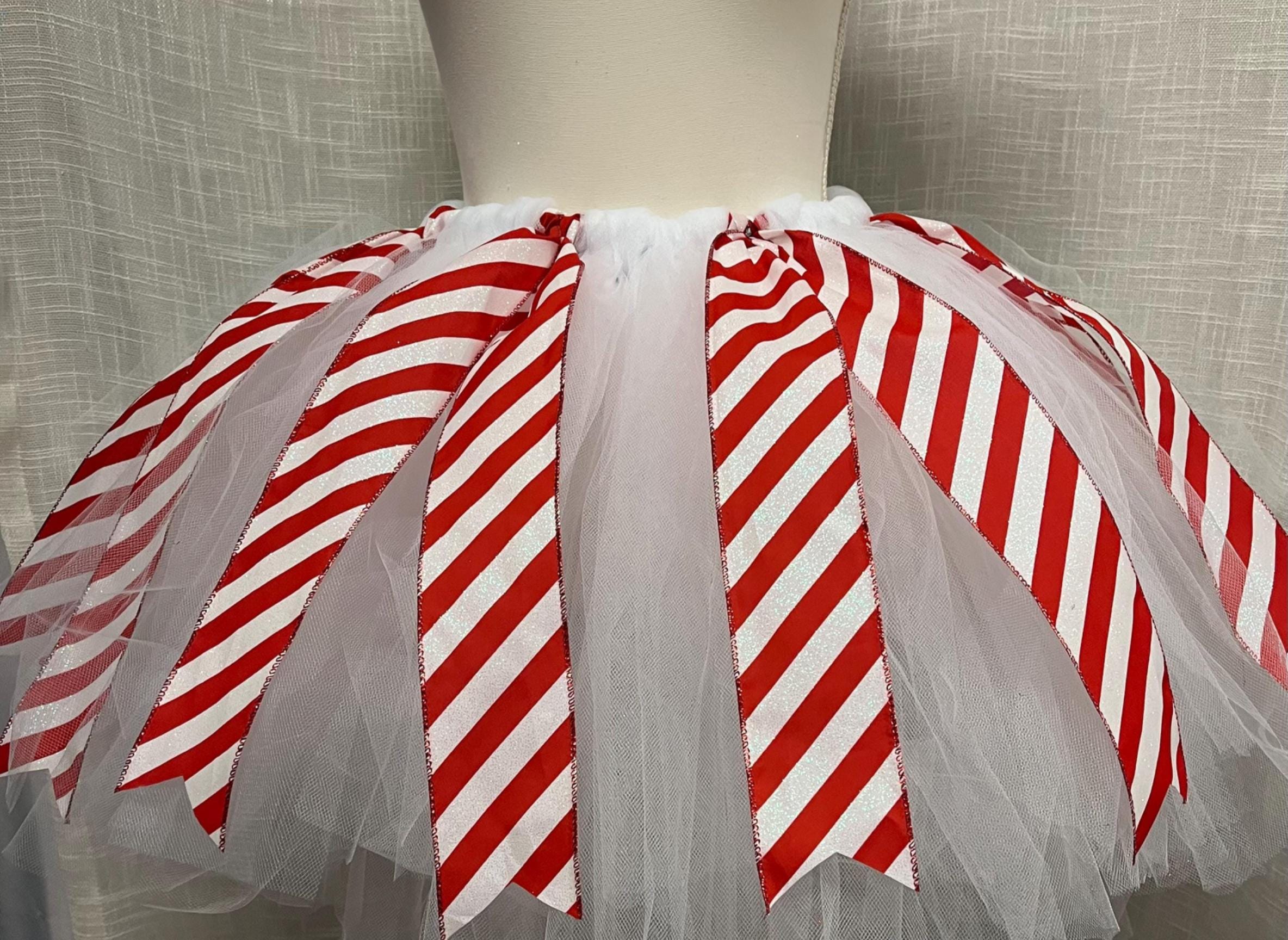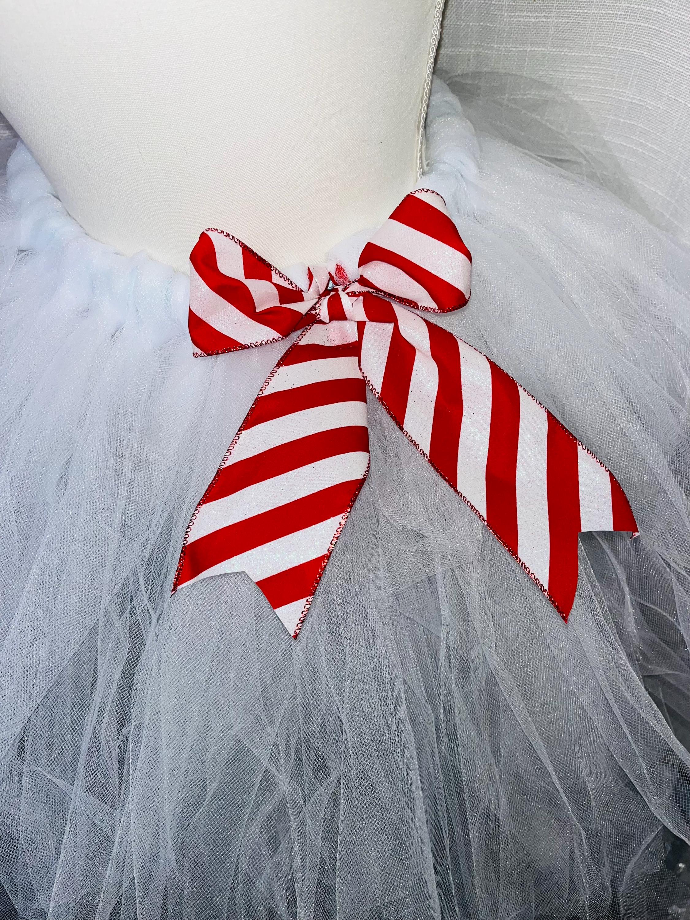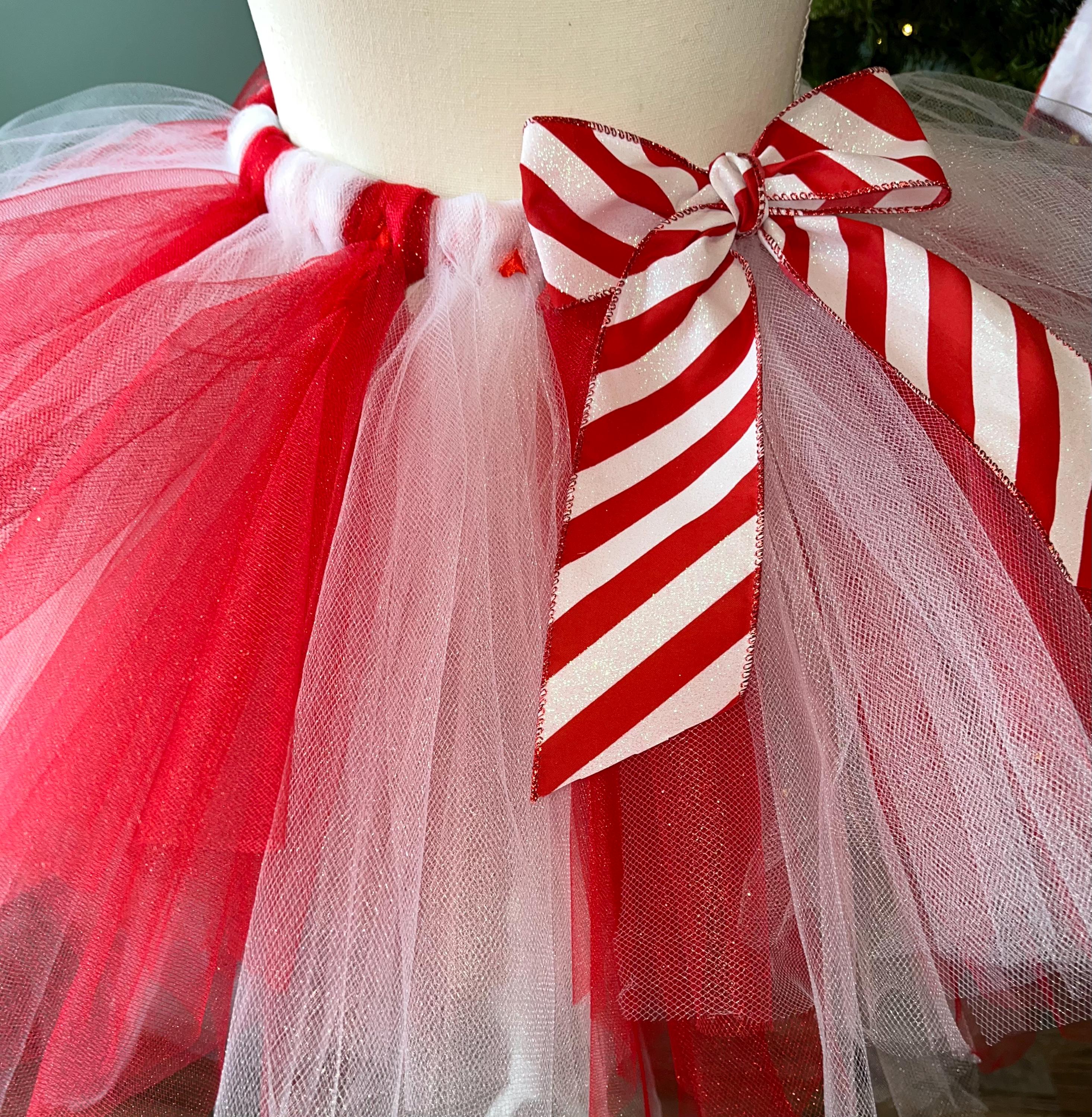 Children’s Candy Cane Tutu: Red and White Tulle Skirt with Striped Bow