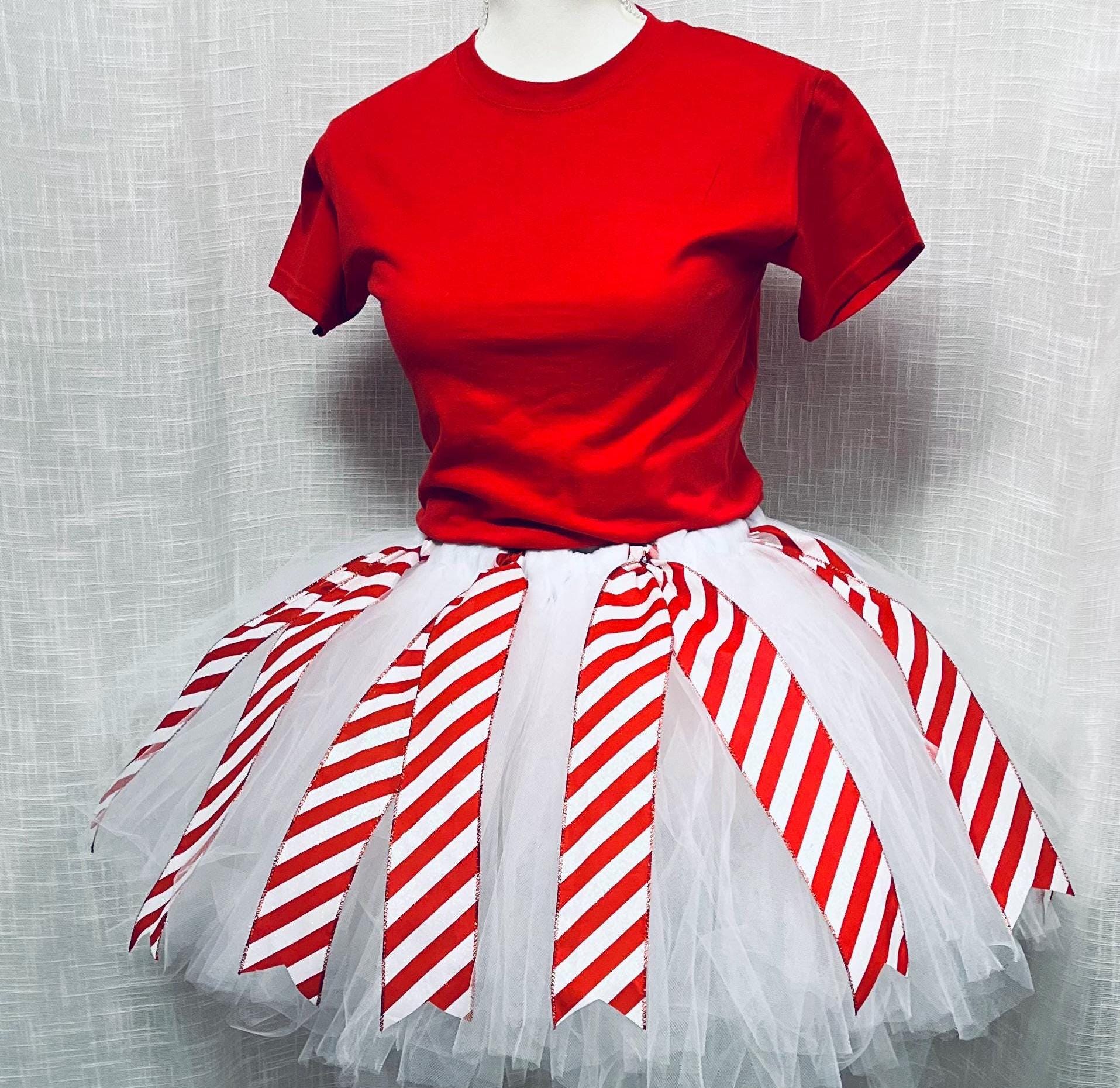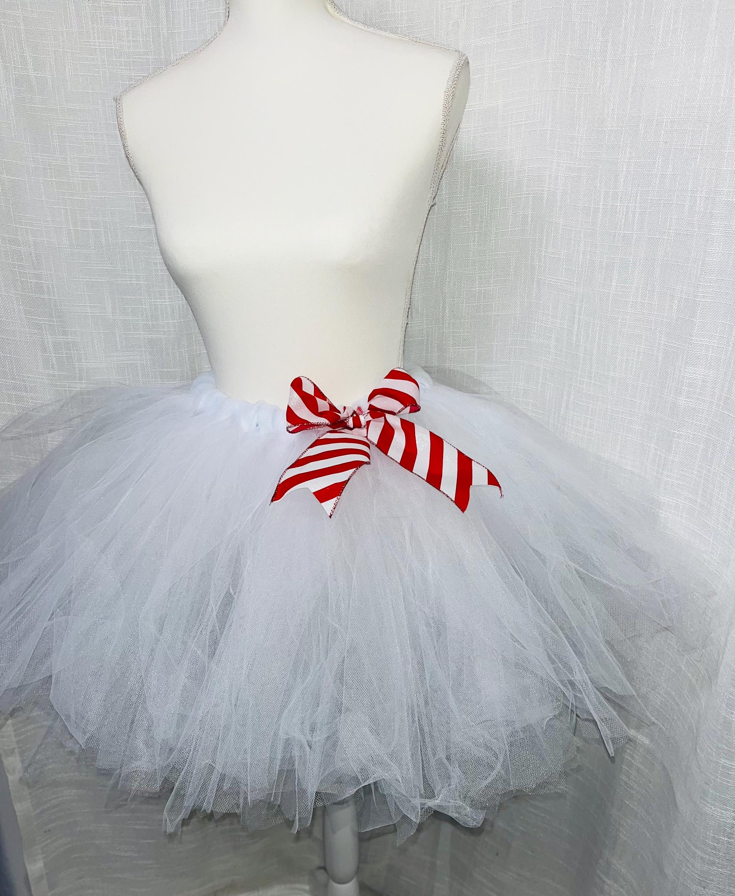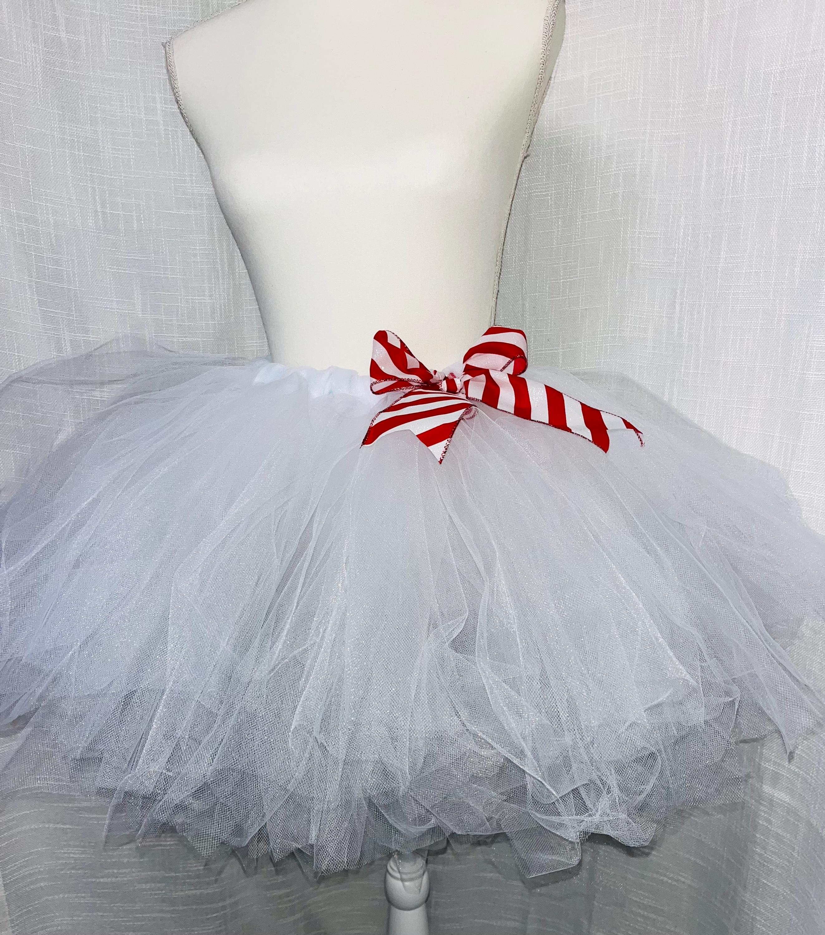 Children’s Candy Cane Tutu: Red and White Tulle Skirt with Striped Bow