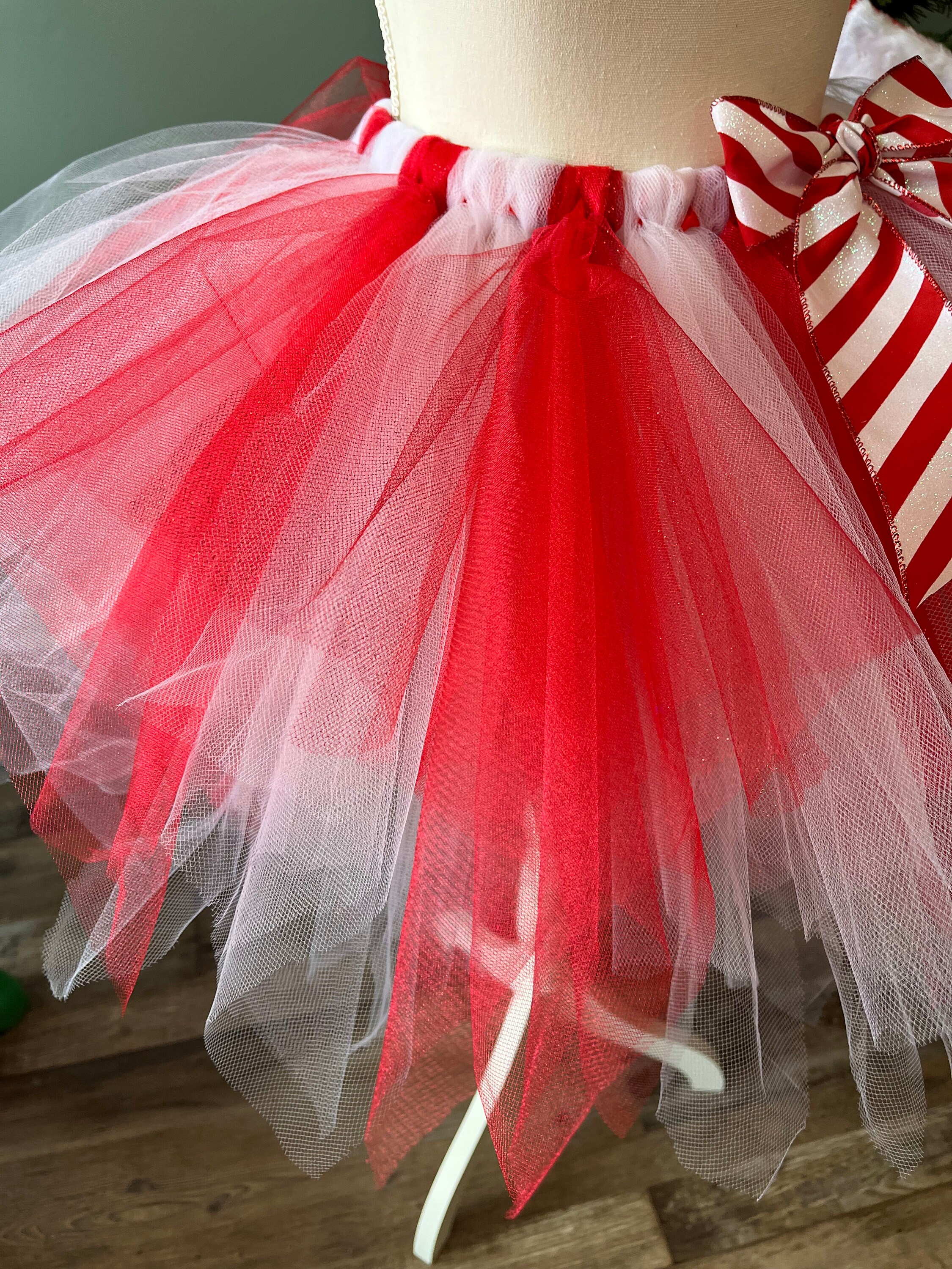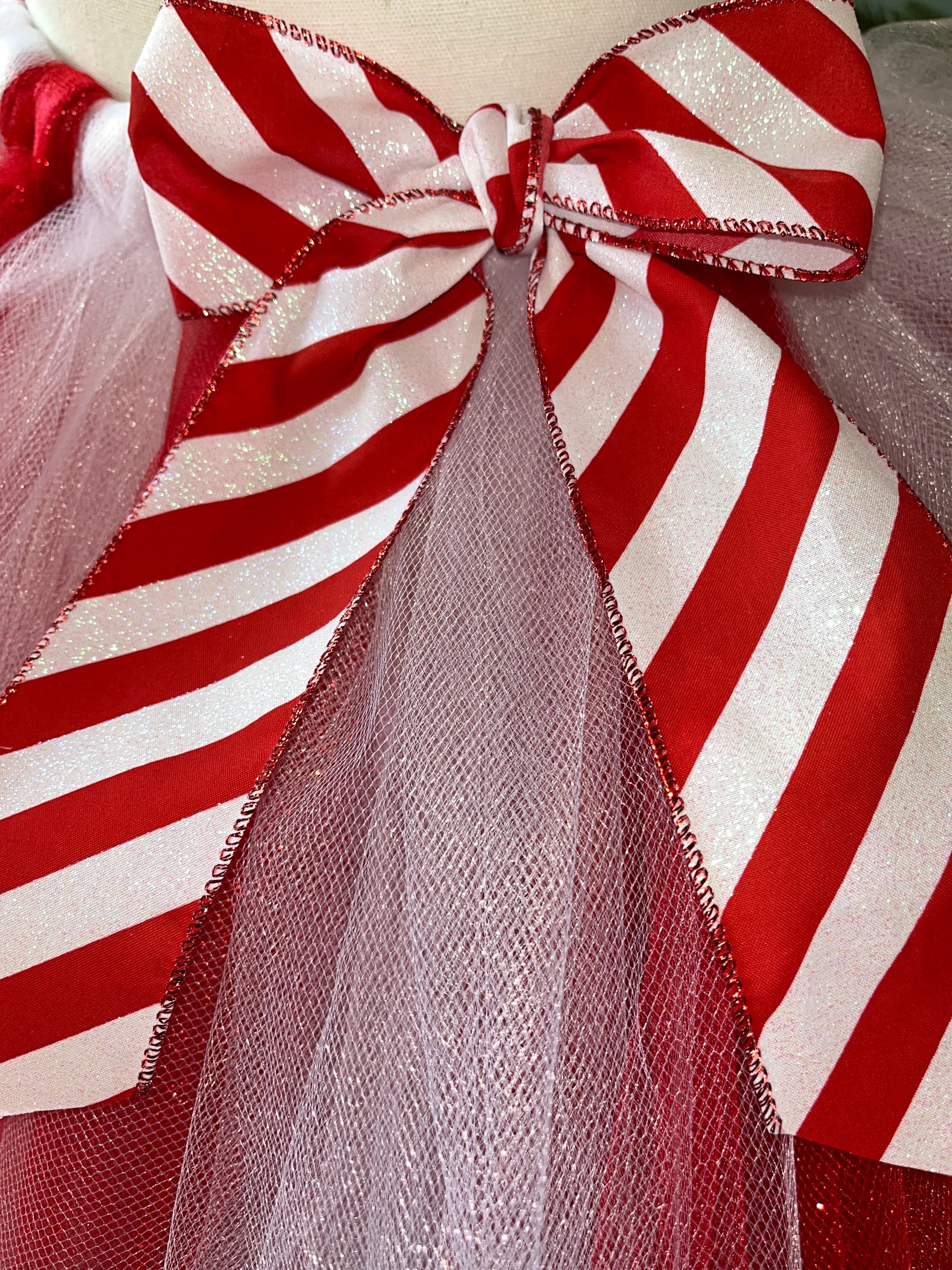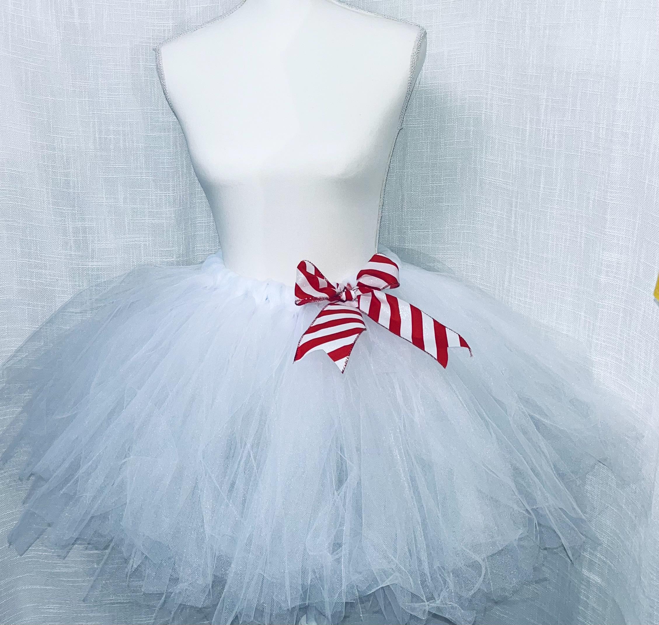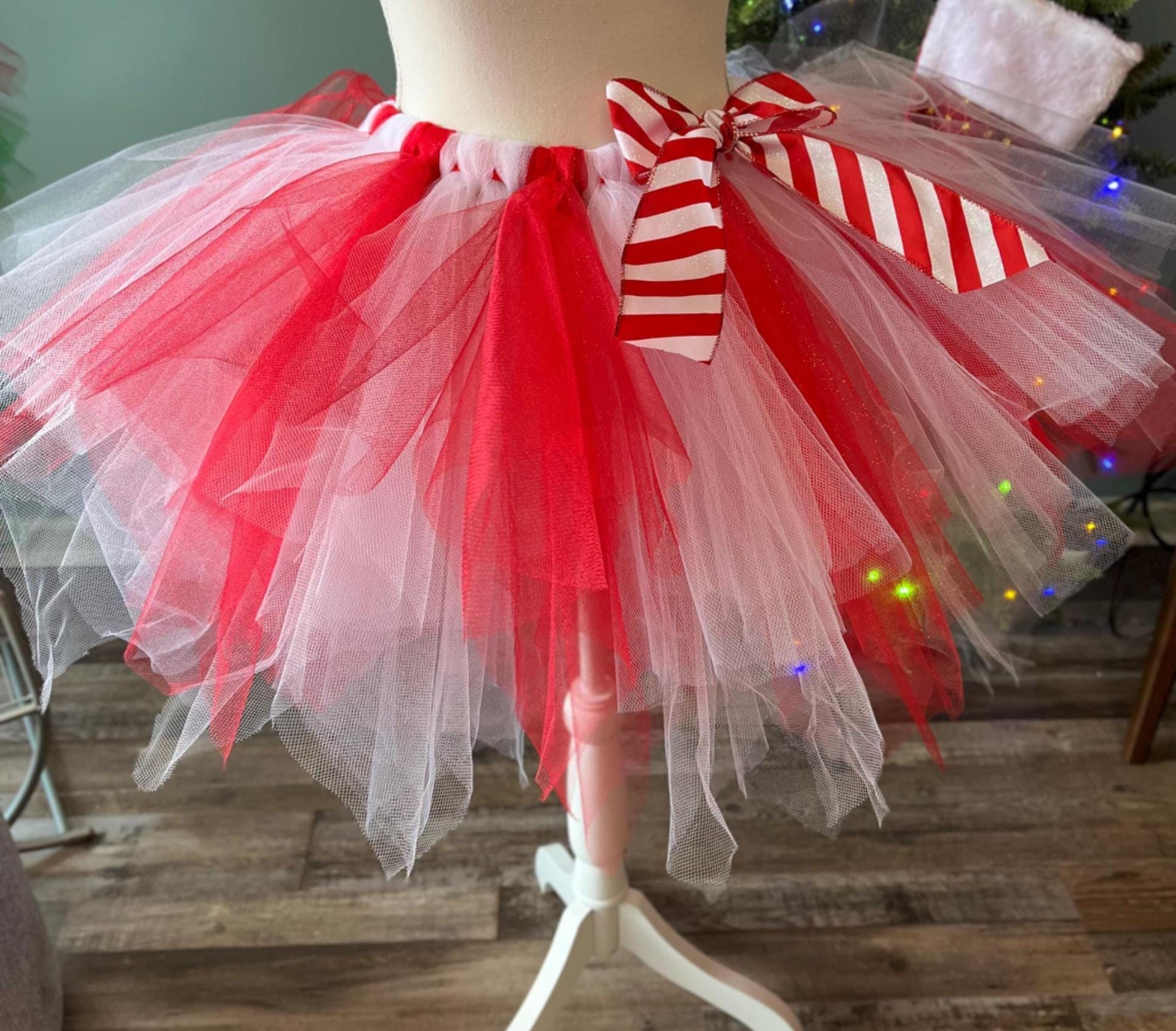 Children’s Candy Cane Tutu: Red and White Tulle Skirt with Striped Bow