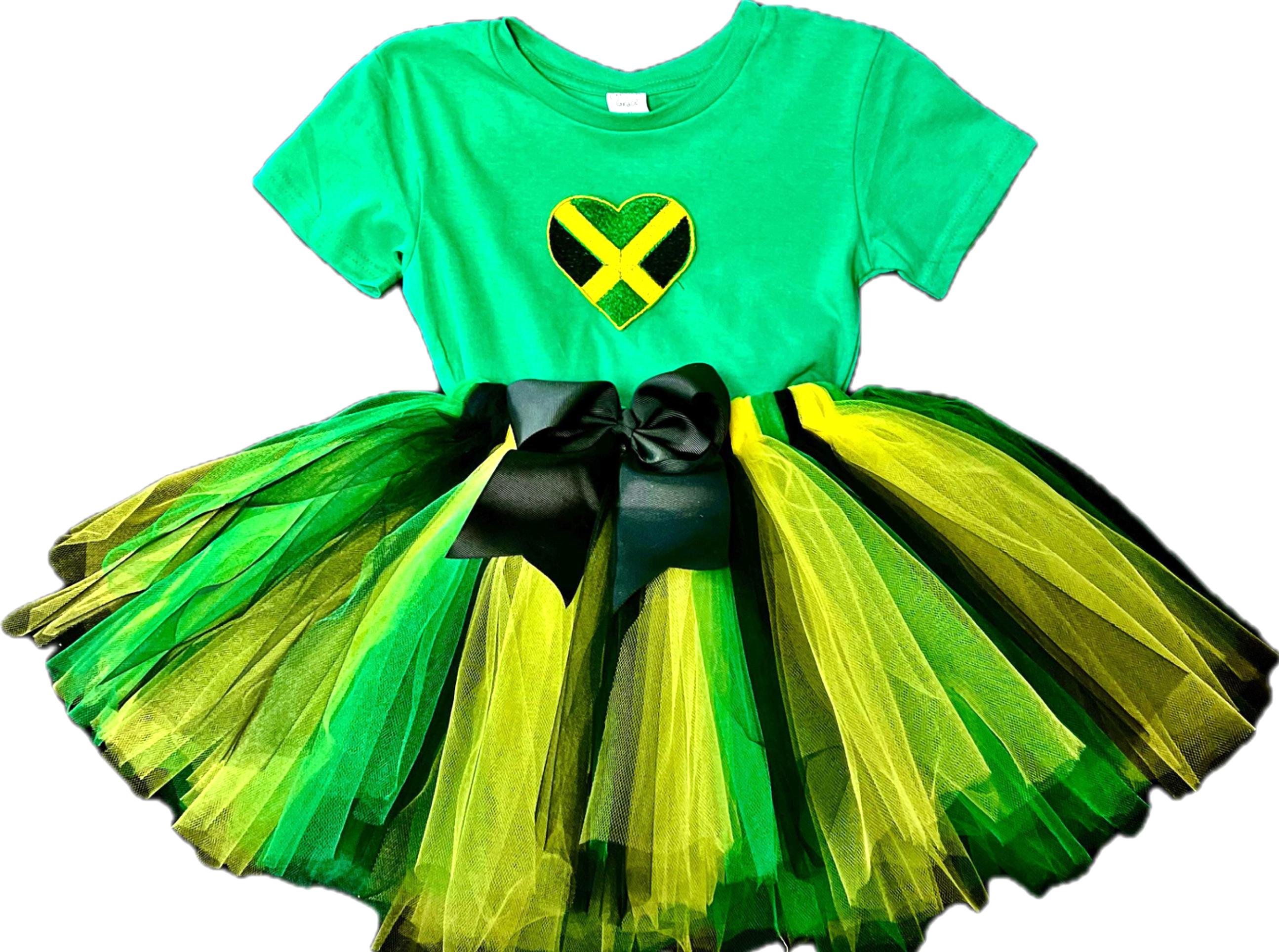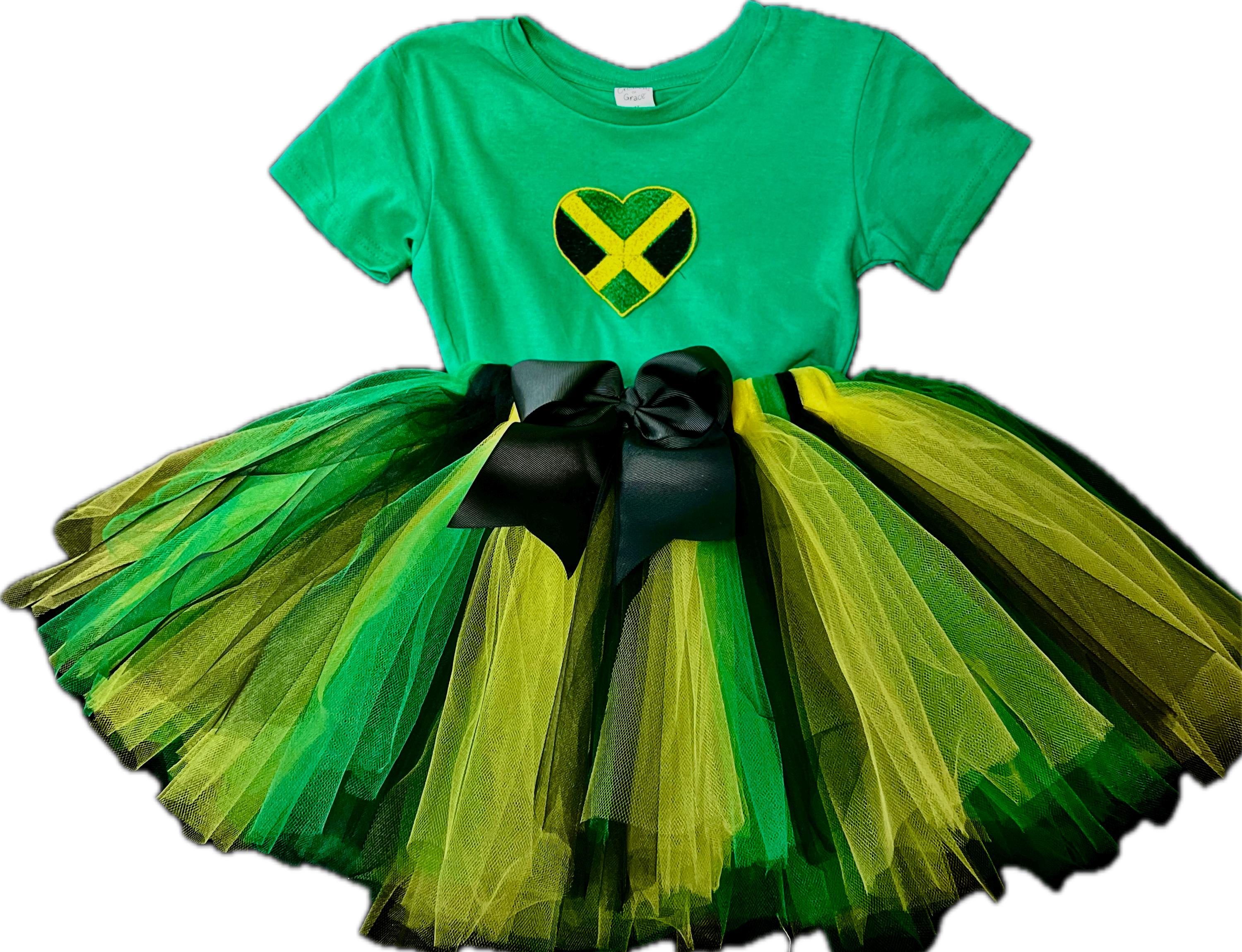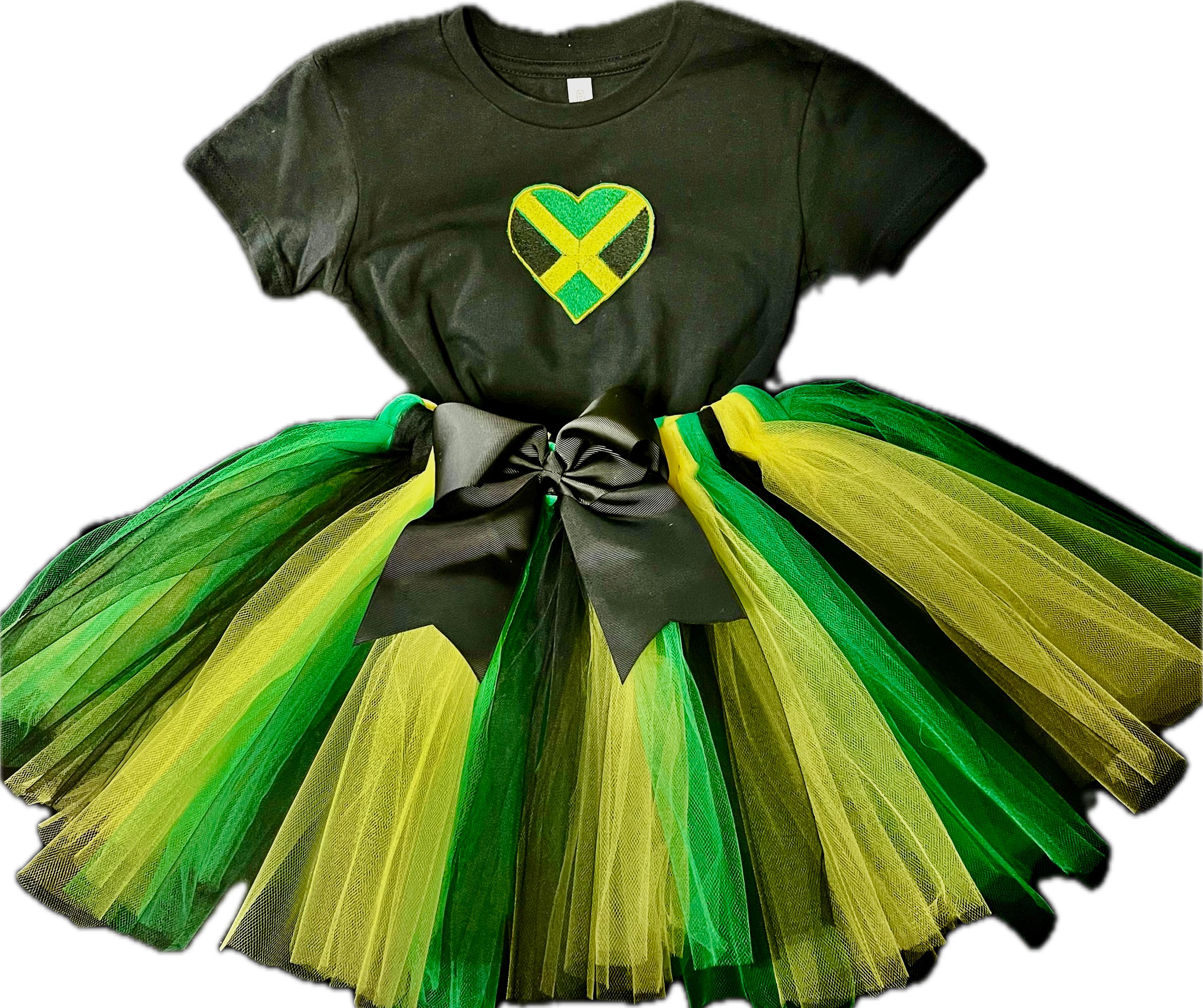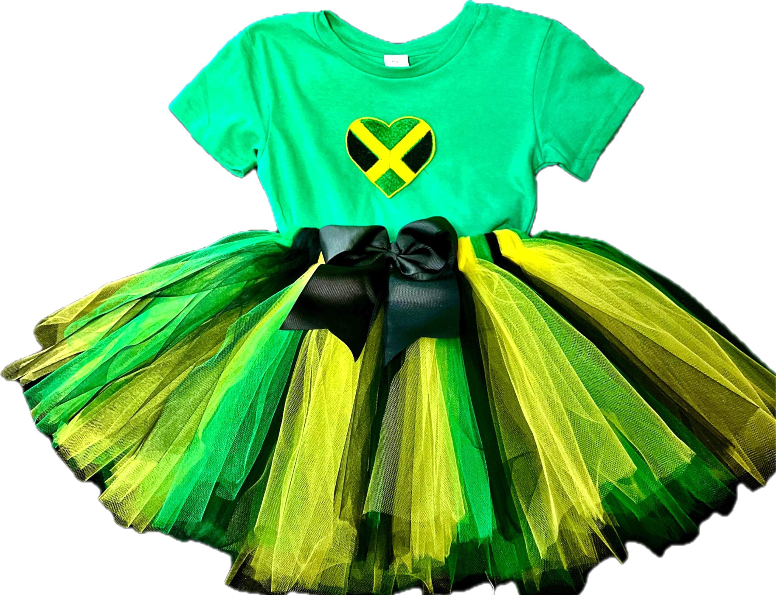 These adorable black, green red yellow and white color Jamaican’s flag color scheme tutu set includes a lovely tutu to match T shirts are , embroidered a black , green and yellow heart to last for years ! Great for many different festivities or for everyday wear, parties, vacationing , Jamaica’s Independence Day celebrations and so much more! This Jamaican flag color themed inspired tutu set was handmade from 100% Polyester tulle fabric material and 1” satin cover elastic waist band. Lightweight and well crafted . Should be Worn with Leggings or tights for added coverage Tutu is available in your favorite choice of colors as well at no additional costs to you!, please leave me a note in the message box below after your purchase, thanks.