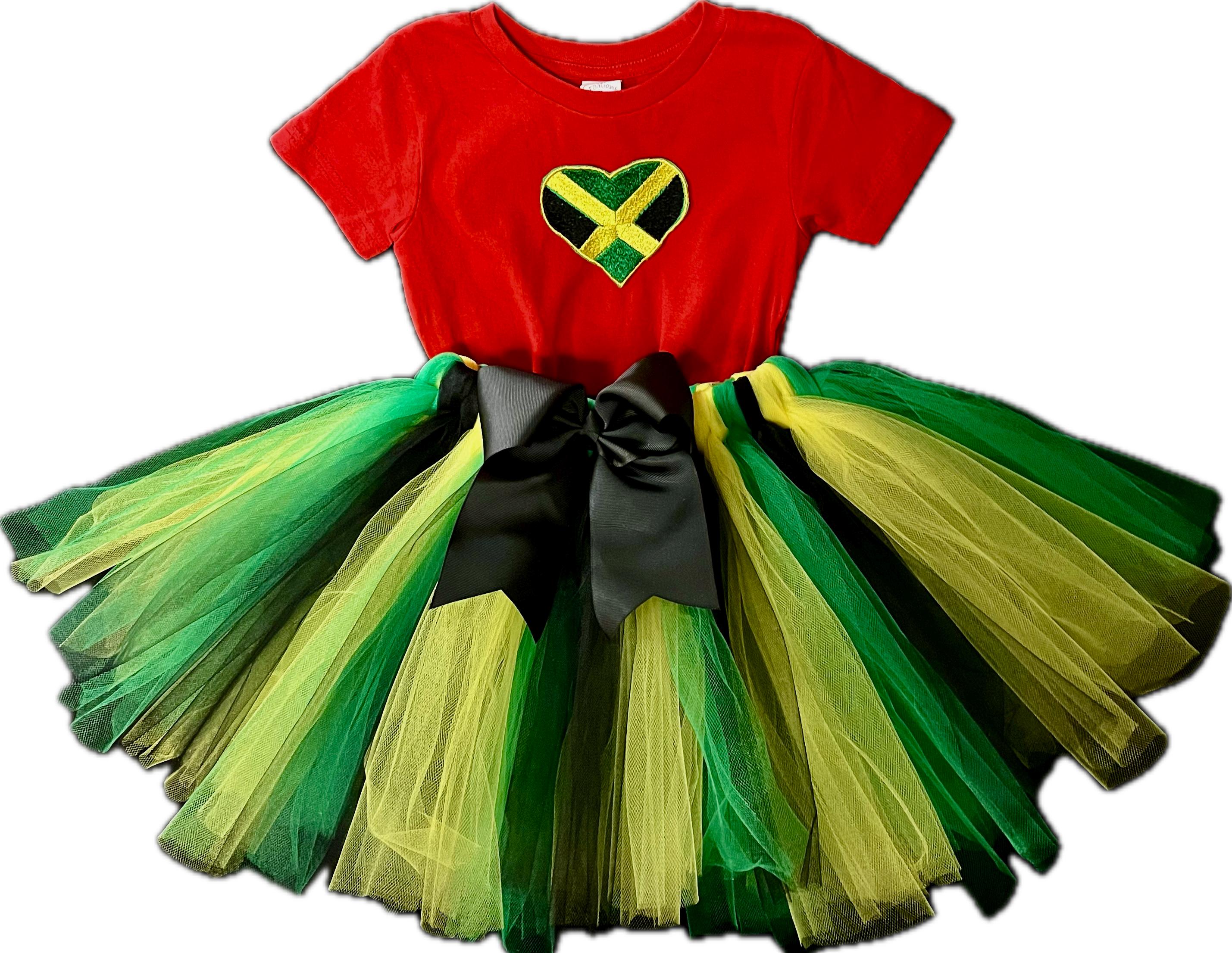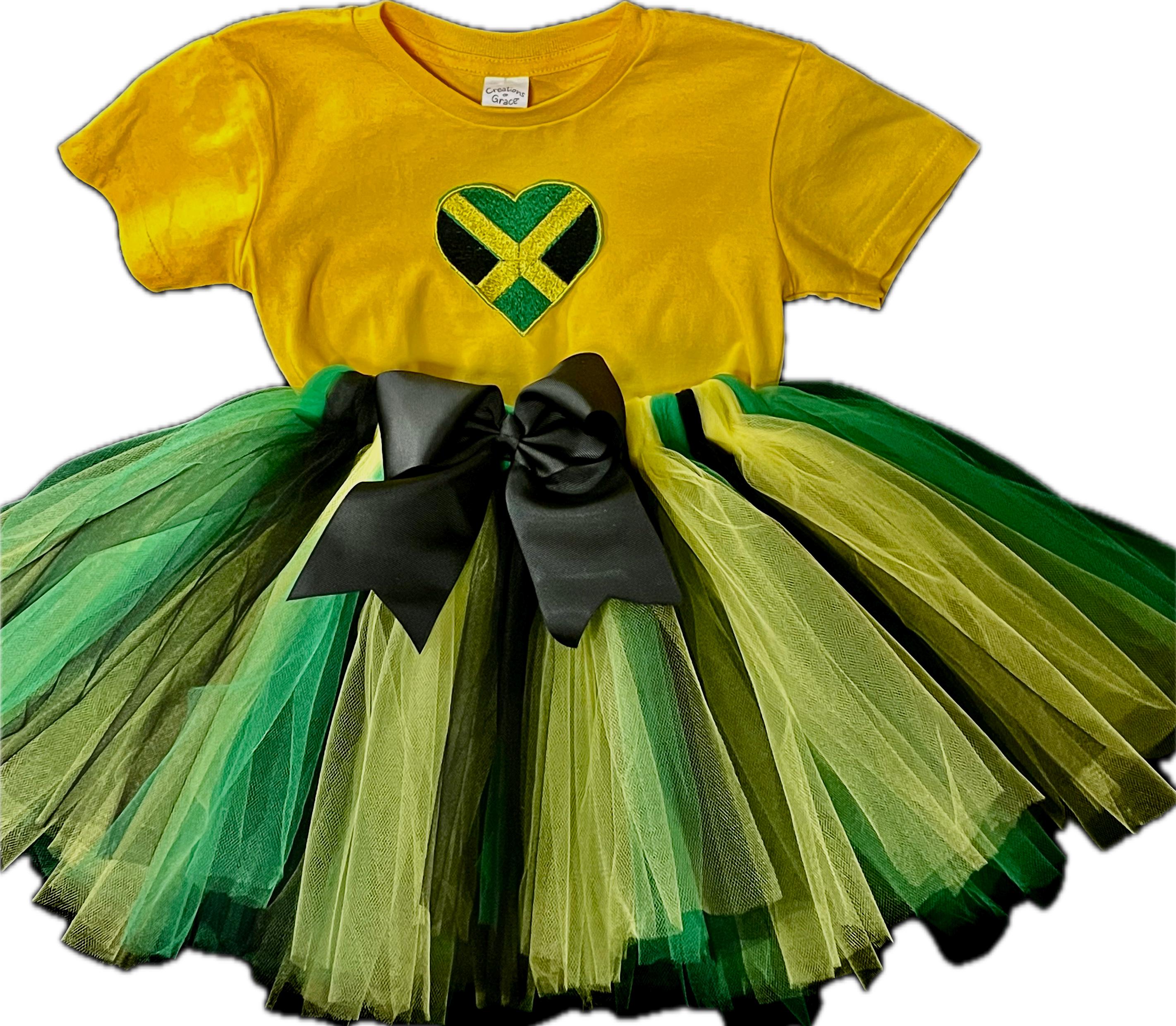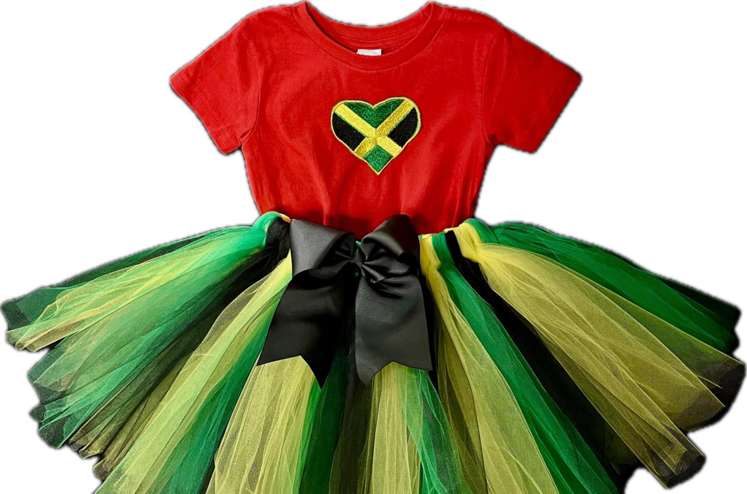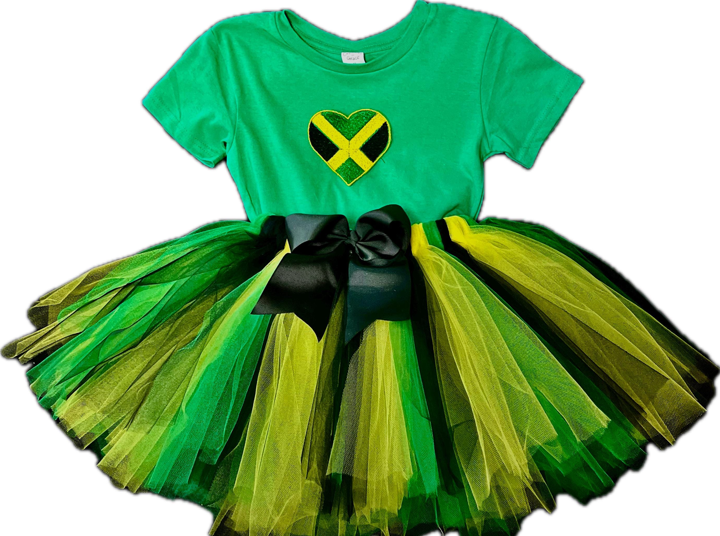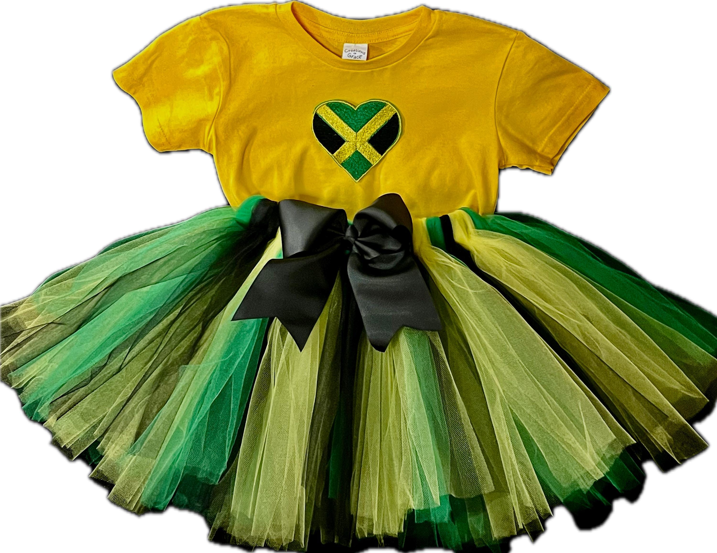 These adorable black, green red yellow and white color Jamaican’s flag color scheme tutu set includes a lovely tutu to match T shirts are , embroidered a black , green and yellow heart to last for years ! Great for many different festivities or for everyday wear, parties, vacationing , Jamaica’s Independence Day celebrations and so much more! This Jamaican flag color themed inspired tutu set was handmade from 100% Polyester tulle fabric material and 1” satin cover elastic waist band. Lightweight and well crafted . Should be Worn with Leggings or tights for added coverage Tutu is available in your favorite choice of colors as well at no additional costs to you!, please leave me a note in the message box below after your purchase, thanks.
