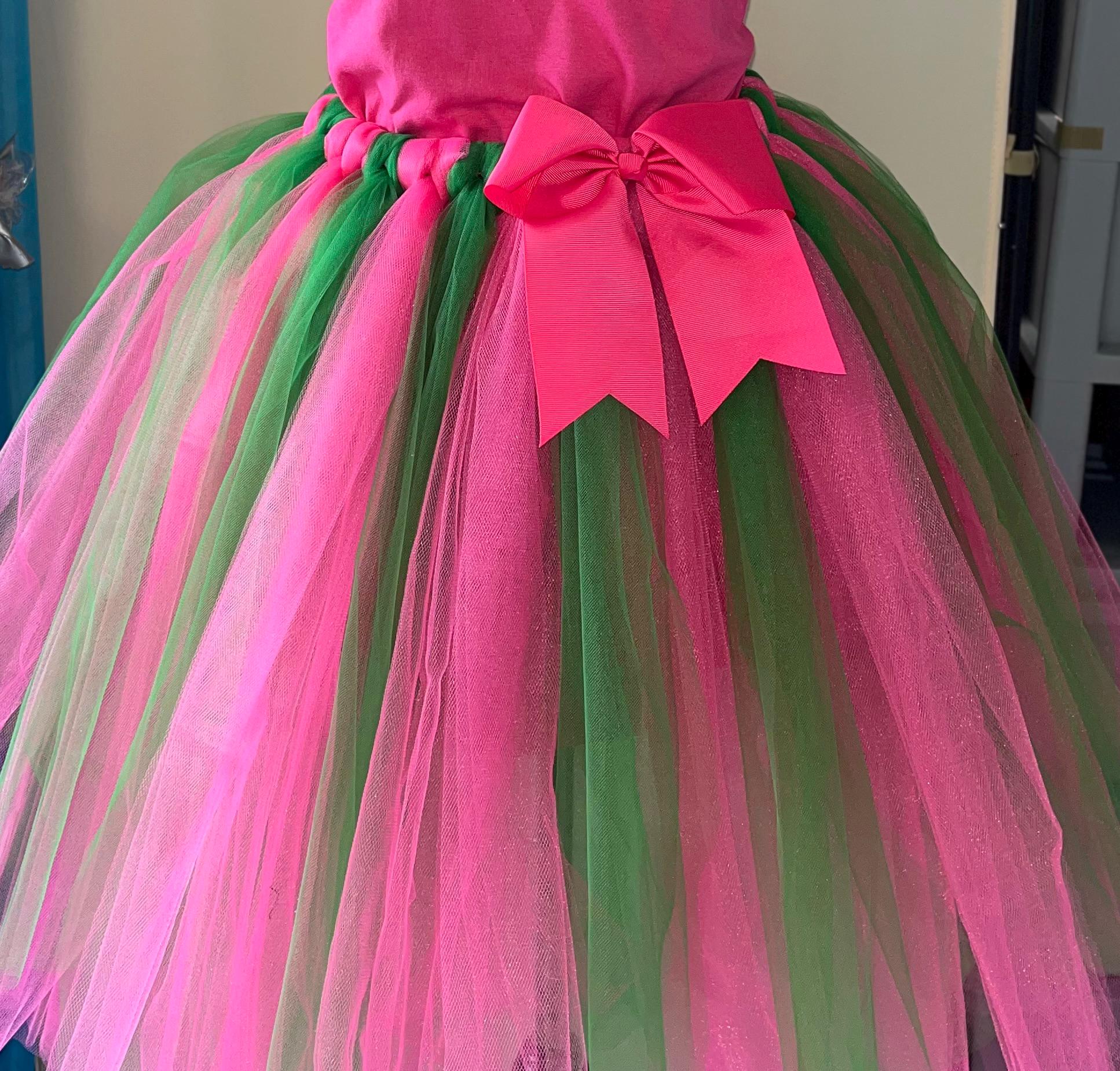 You are going to just love prancing in this extra full handmade bright pink and green adult tutu. Great for fun festivities , birthday parties sorority get togethers, holiday festivities and more ! Package includes tutu only, shirt is not included .Can be worn as formal and semi- formal, this listing is embellished with an extra large pink bow.. desire a different color? No worries please inform your seller , she will be delighted to create your choice tutu at no additional cost to you!