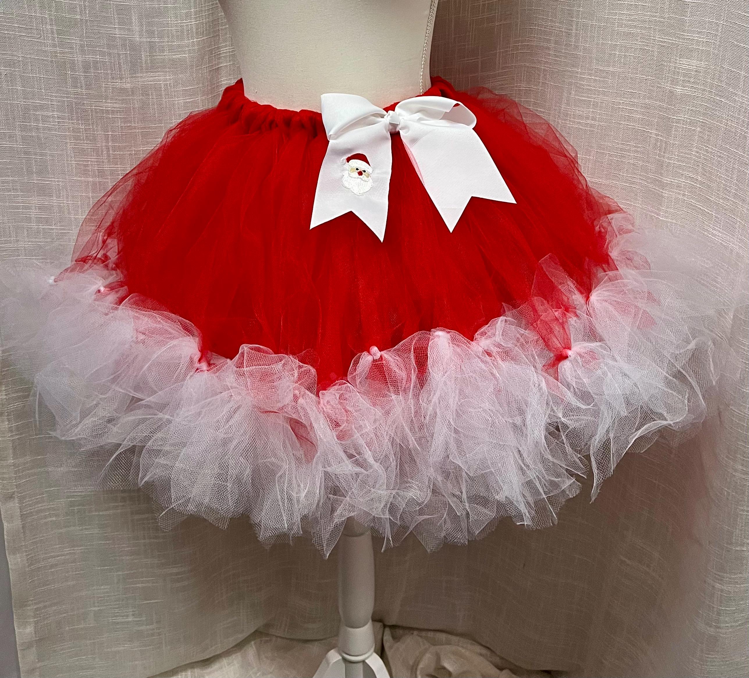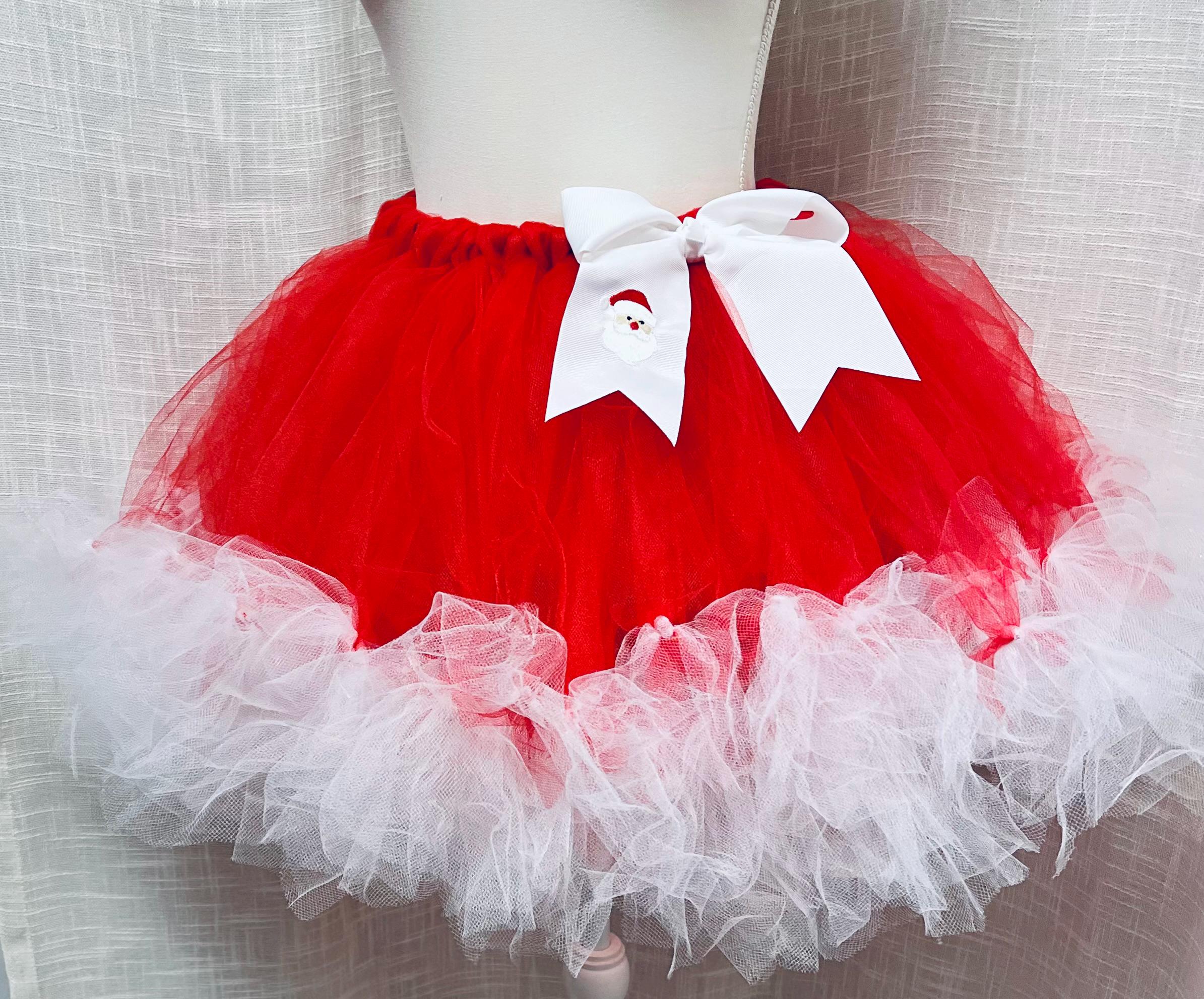 Get ready to greet old Santa in this adorable Mrs Claus red and white tutu. Perfect dress for all your Christmas celebrations .. created by winsome from strips of individual tulle fabric material . Please reach out for further questions or concerns. Thanks