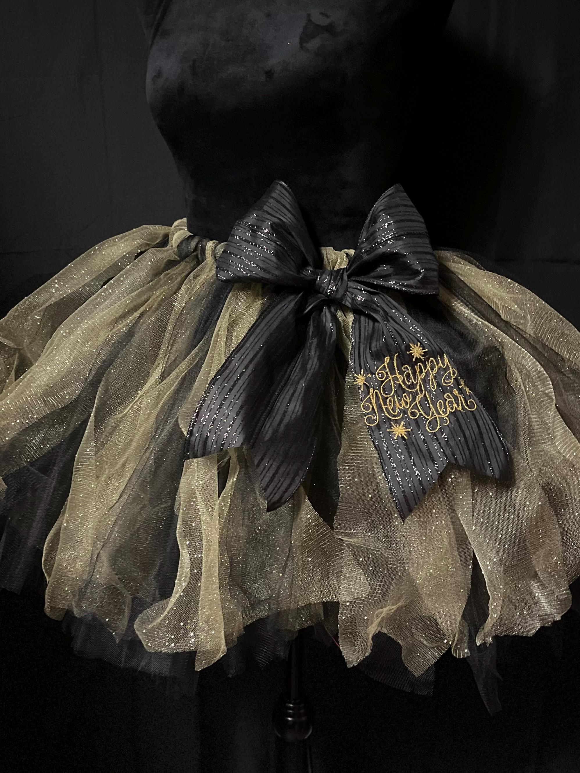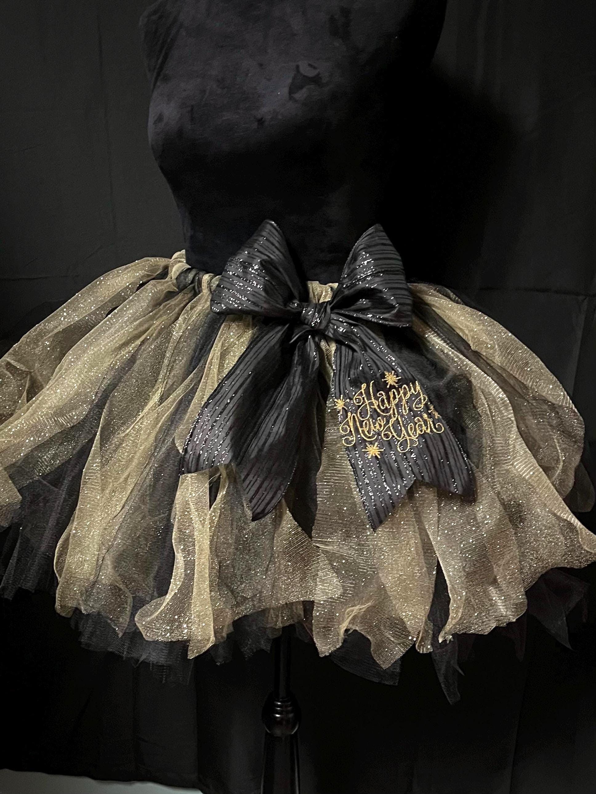 New years celebration tutu: ladies and teen black and sparkling gold