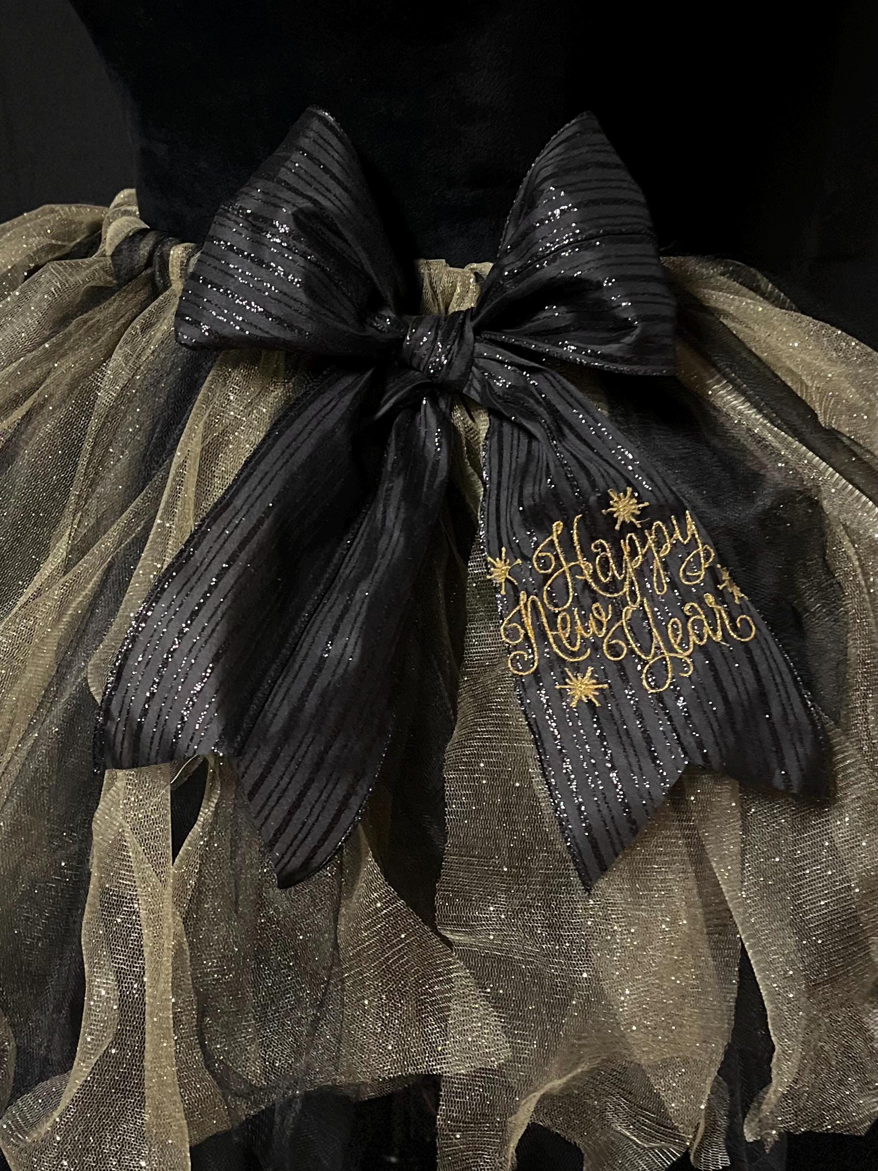 Beautiful and adorable black and sparkly gold tutu just in time to bring in the new year with a BANG. Sparkling Gold color bow enhances the beauty. Layered pointed cut design . Cheers to the New Year!!!