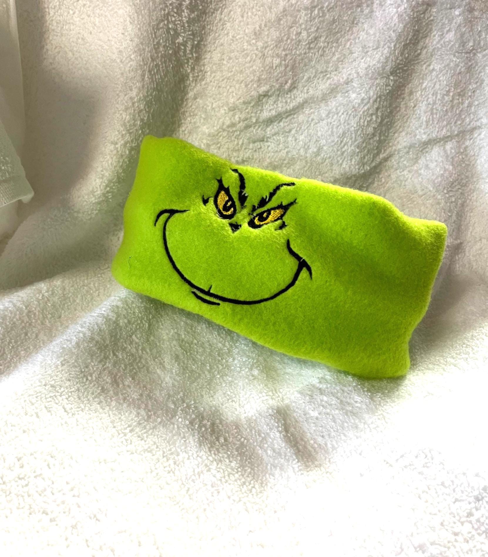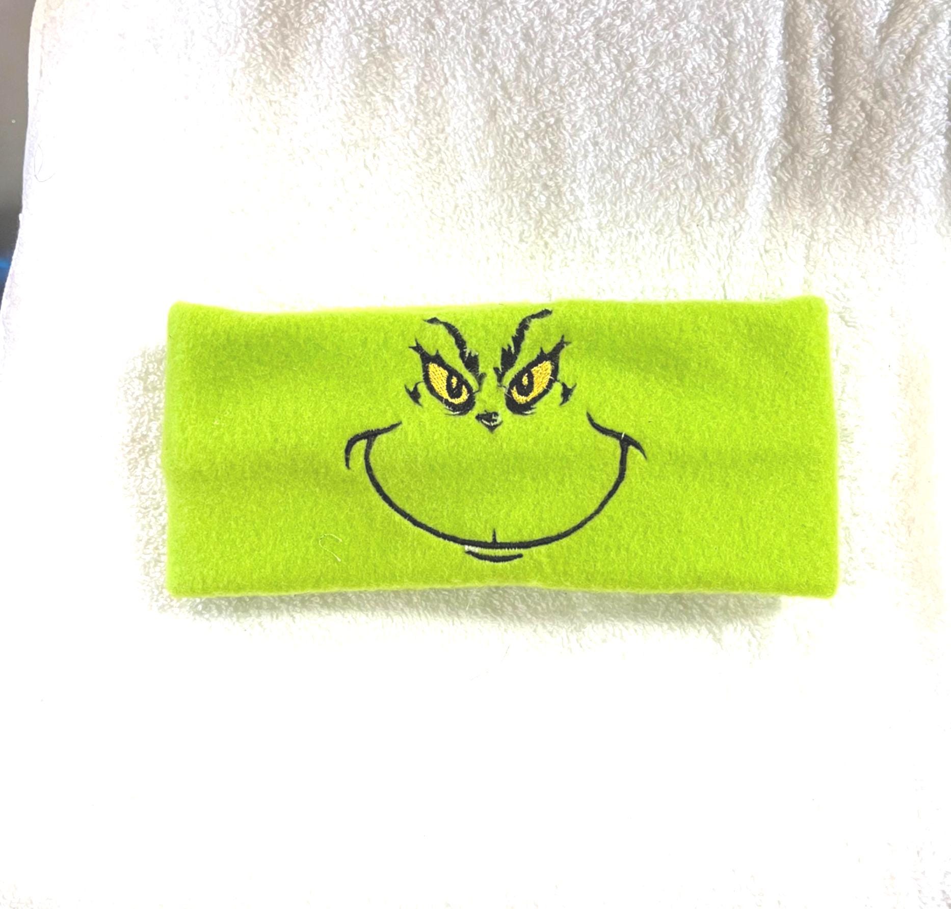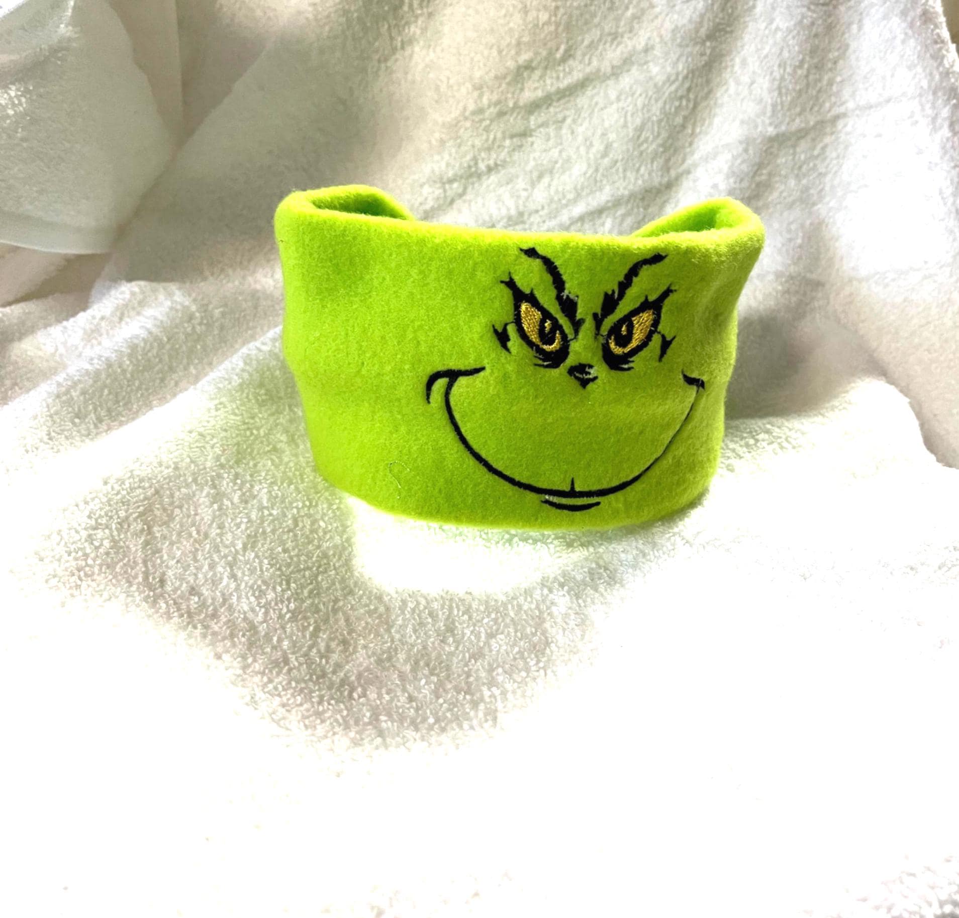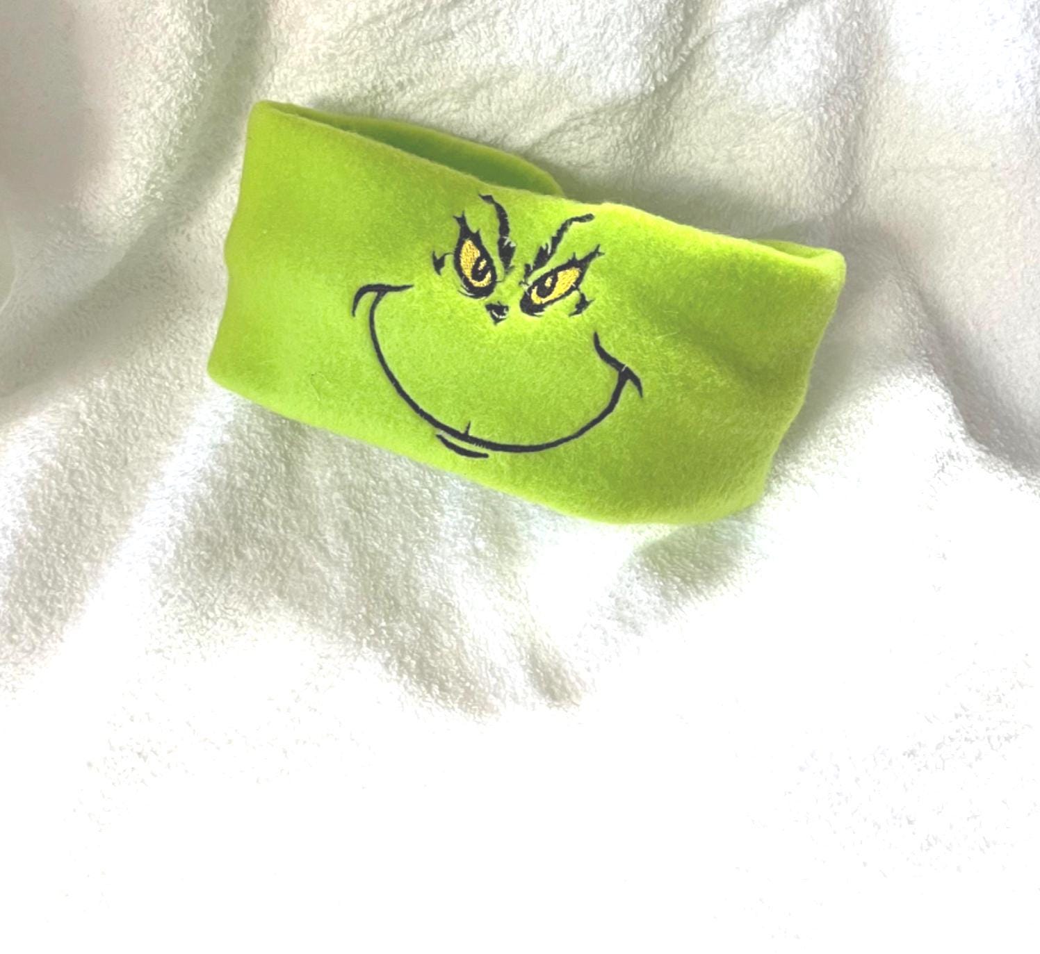 Keep those ears warm with this beautiful ear warmer . Thickness perfect for the cold winter weather. Embroidered with the Grinches smiling face.