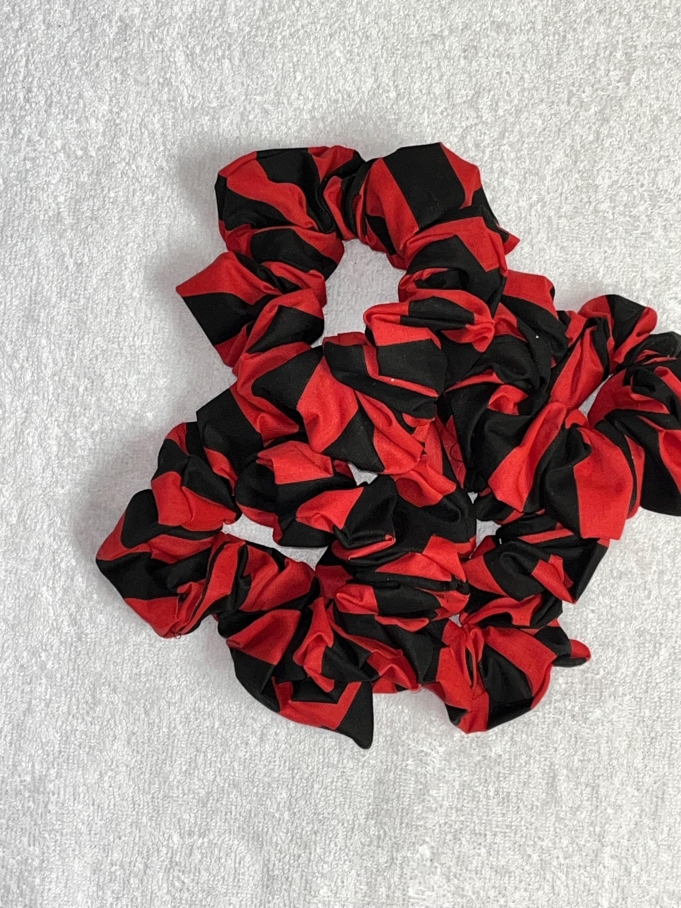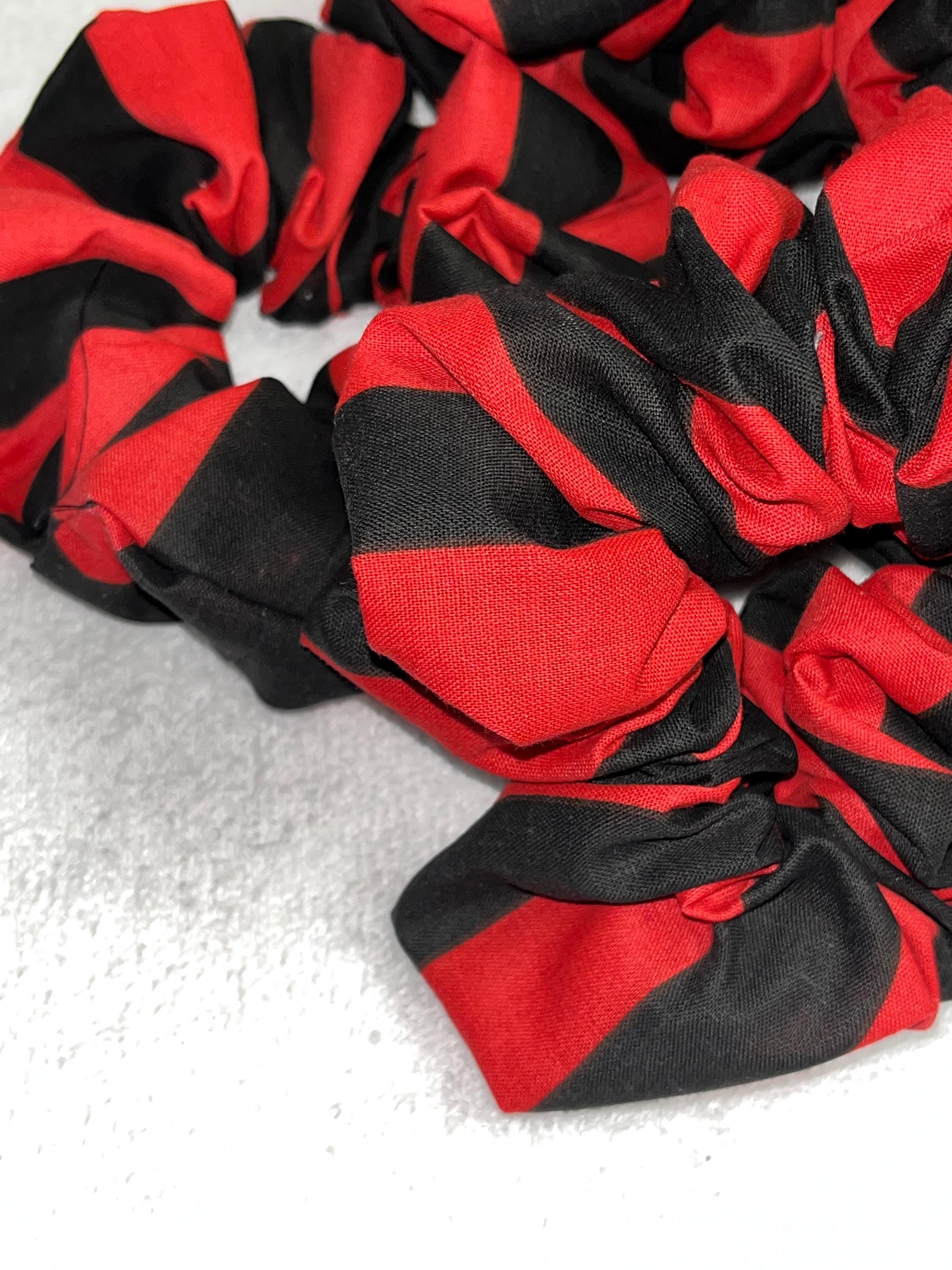 Trendy style Red and black stripes hair scrunchy: football hair dressing Xtra large