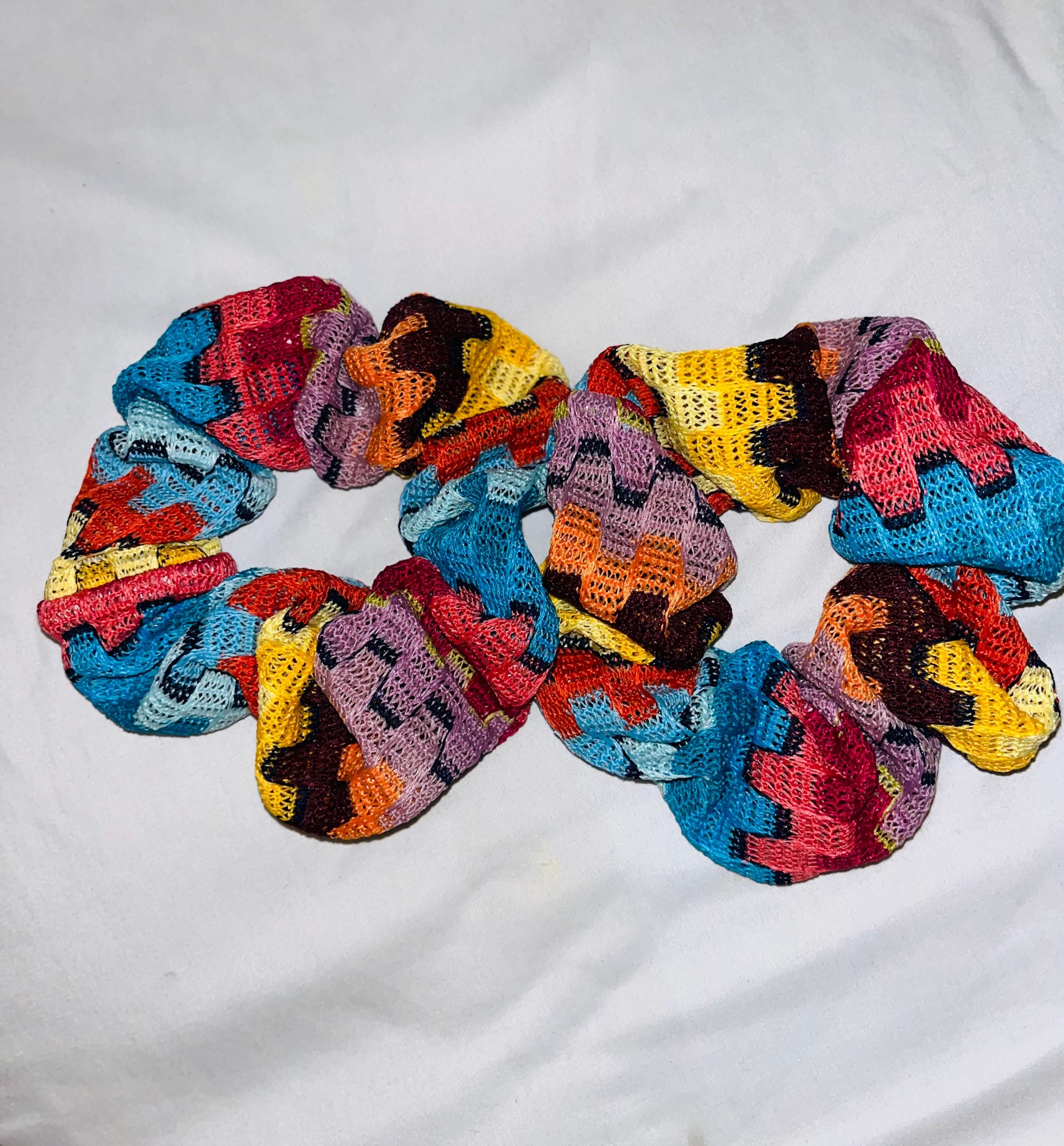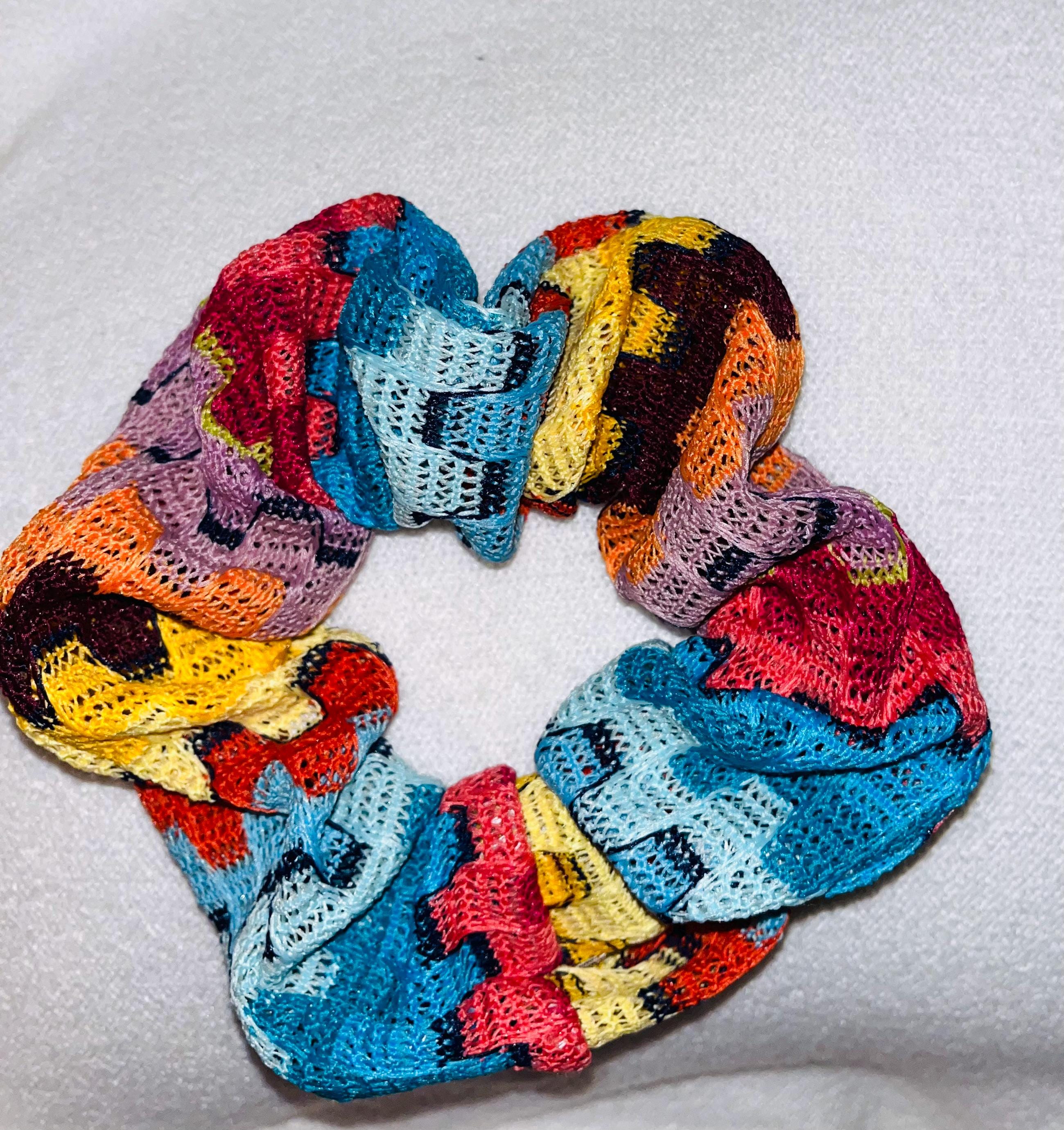 Multi colors Jigsaw puzzle design knitted fabric material scrunchie: one size trendy style