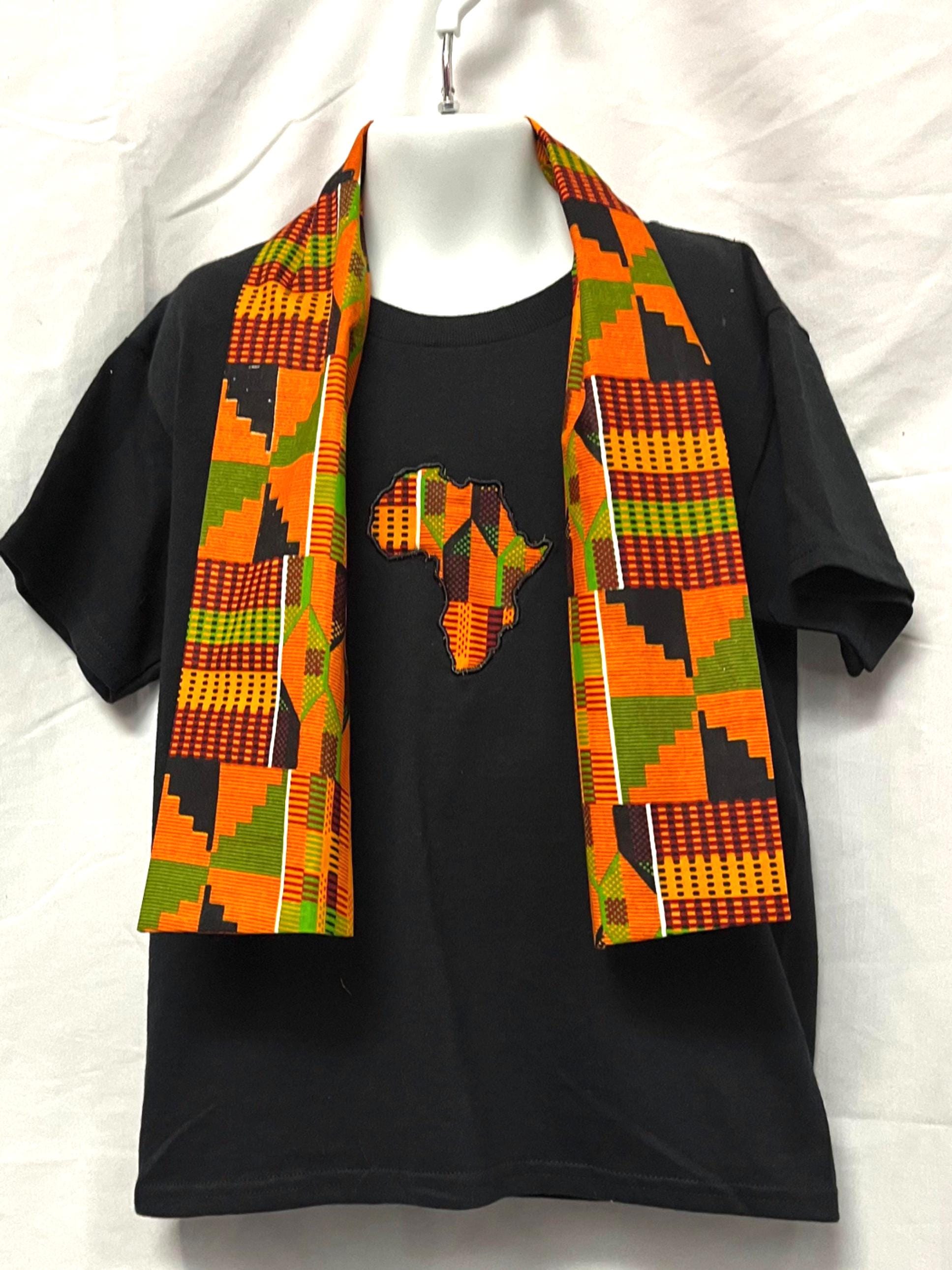 Kente African Print Daddy Son Matching Outfits, Cotton Sashes and Appliqué T-shirts