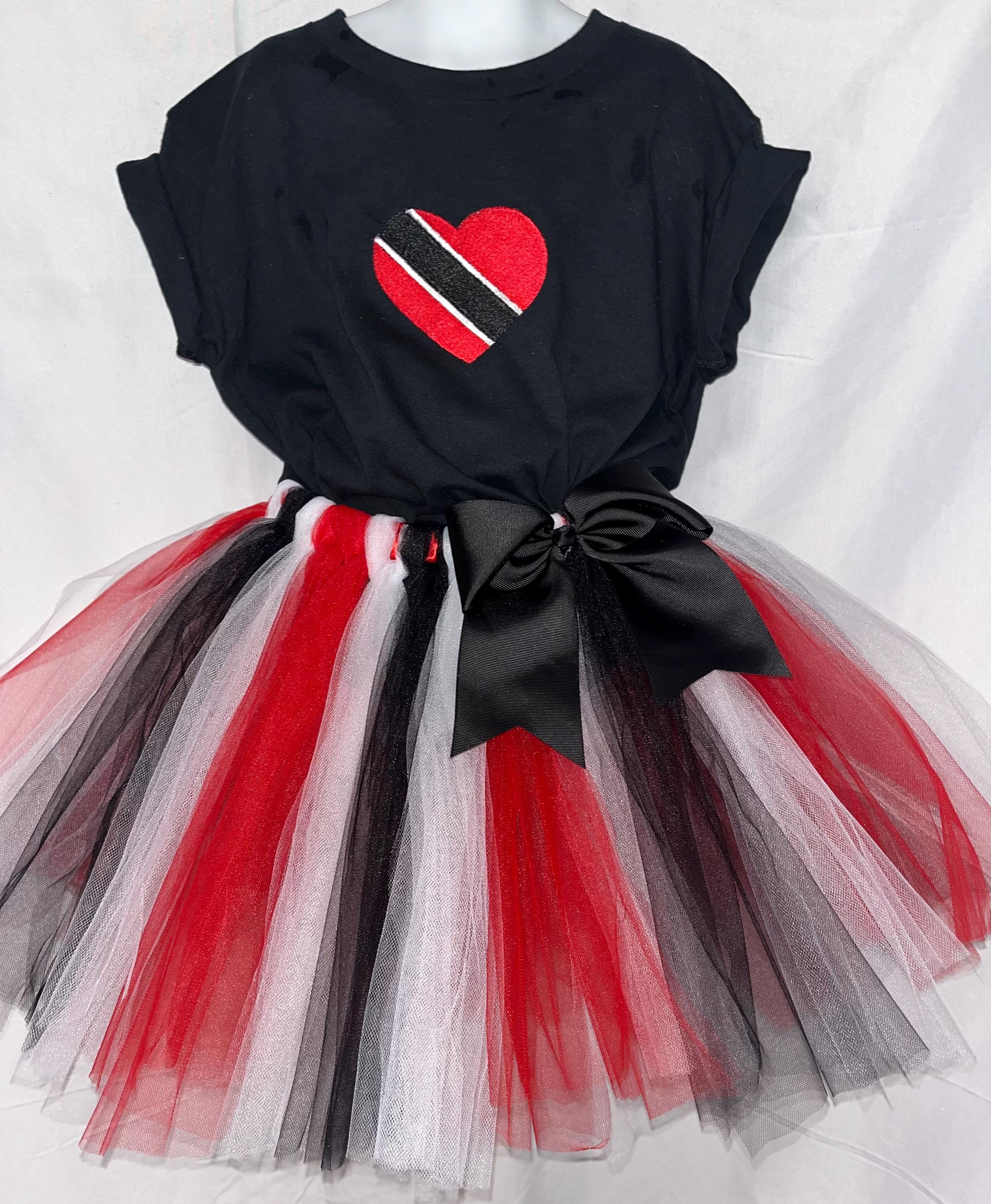 Children Trinidad flag inspired outfit. handmade T-shirt is embroidered with a heart shaped national flag of Trinidad. Made to last for years and years. Desire another color theme? no problem.. you can reach out to winsome by using the message link provided. Thanks