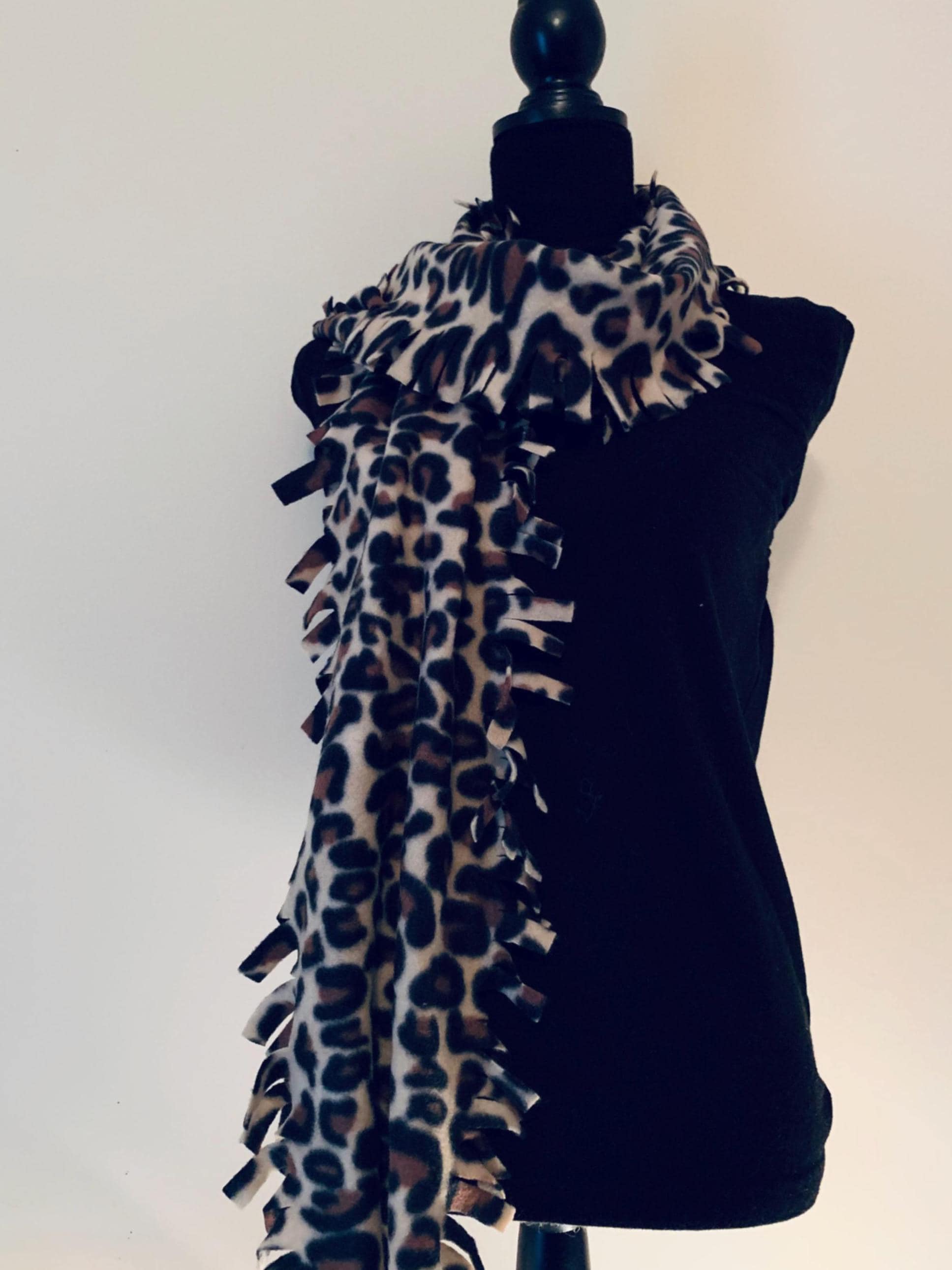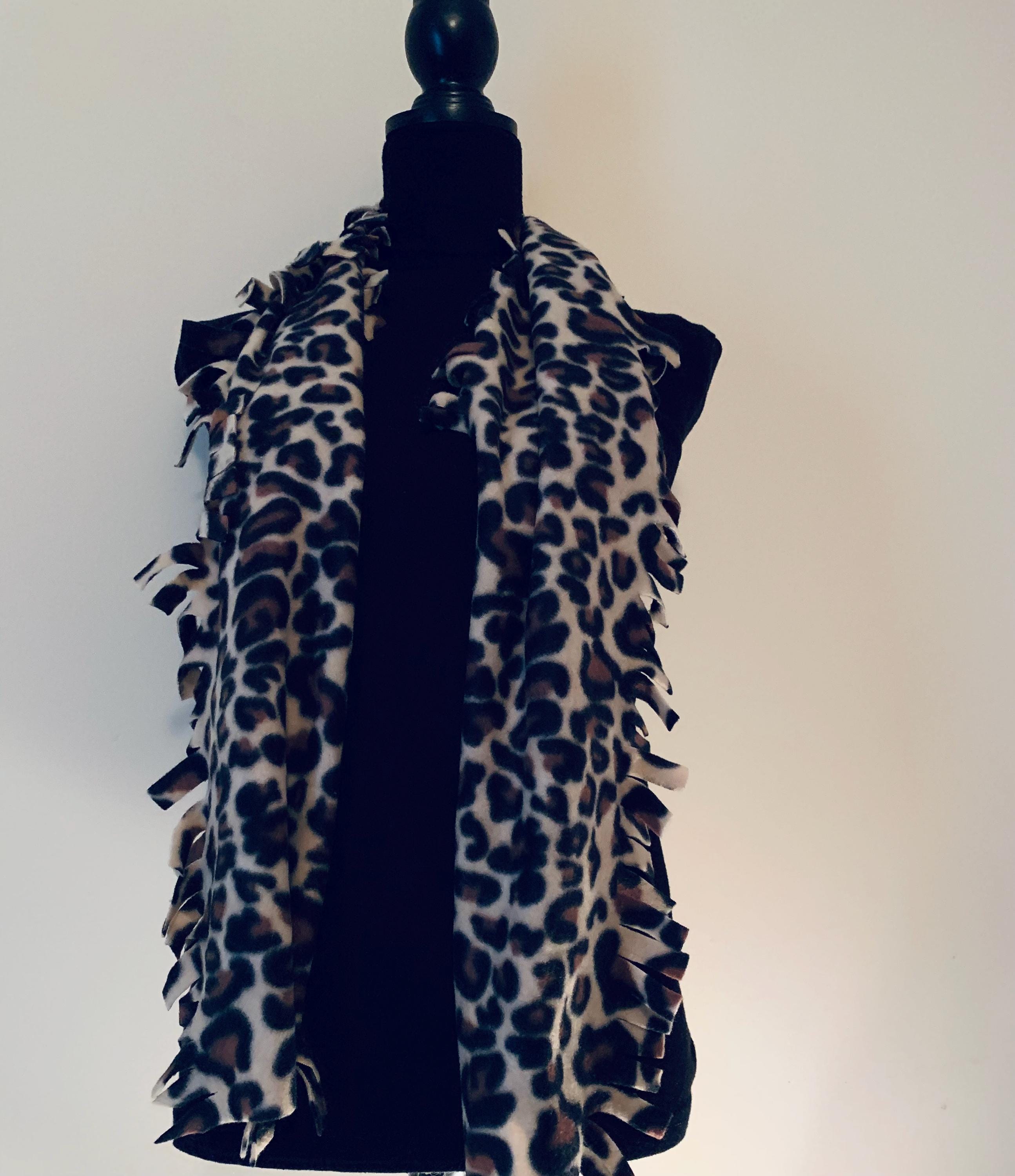 This trendy leopard print Fringed Scarf is the perfect accessory for the cold season. Made of very soft, warm, washable Fleece Fabric. Generous length for various wearing options: Can be worn knotted, draped loosely, or wrapped around the neck.